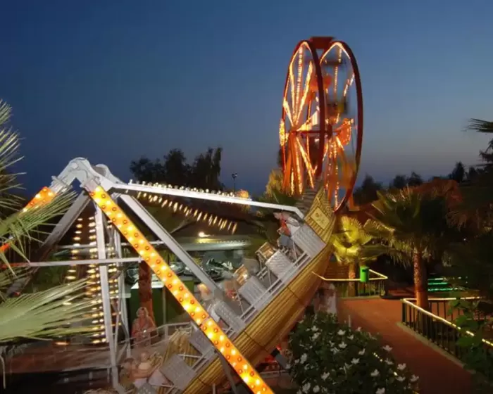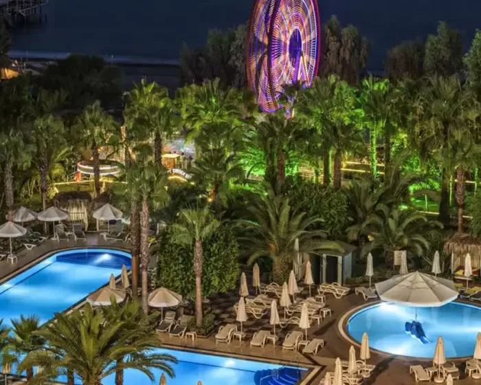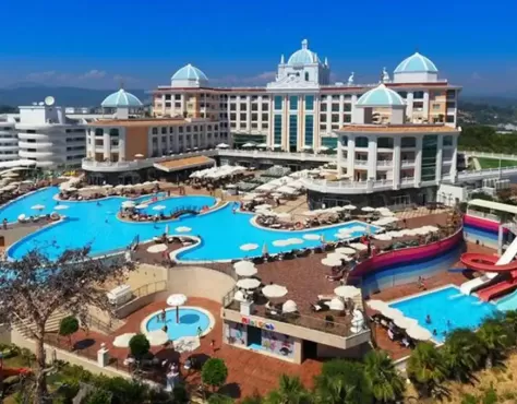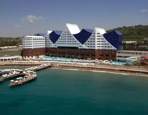 Glavni restoran Delphin na bazi otvorenog bufea, A’la Carte restorani - Ottoman (turski), Mr. Fish (morska hrana), Dolce Vita (italijanski), China House (kuhinja dalekog istoka), Tepenyakii (japanski), Margarita (meksički), Mediterranean (mediteranska kuhinja), snek restoran kod plaže, barovi u okviru hotelskog kompleksa koji služe i domaća i uvozna pića, šoping centar, frizer, usluga pranja veša, usluga lekara, rent-a-car, igraonica i kompjuterske igre, Wi Fi, otvoreni i zatvoreni bazeni, bazeni za decu, tobogani, fitnes, sauna, tursko kupatilo, parno kupatilo, đakuzi, tereni za tenis, stoni tenis, odbojka na plaži, pikado, zabavni program, takmičenja, večernji muzički i šou program, tursko veče na svakih 15 dana, gala veče na svakih 15 dana, mini klub sa bioskopom na otvorenom i sajmom zabave, oprema za tenis, časovi tenisa, masaža, salon lepote, bilijar, sportovi na vodi, škola ronjenja, hotelska privatna plaža je šljunkovita i sa platformom sa peskom na obali. Ležaljke, suncobrani i peškiri za plažu se ne naplaćuju.