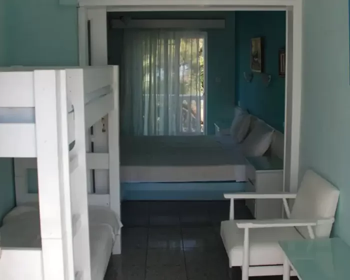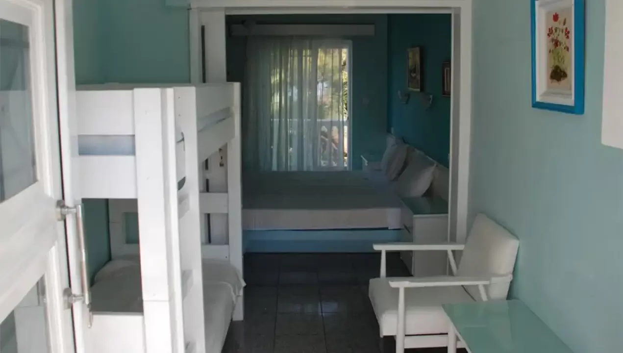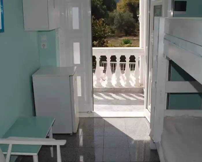 Apartman: u jednoj sobi francuski ležaj, u drugoj jedan standardni ležaj i kreveti na sprat. U apartmanu mogu boraviti maksimum 3 odrasle osobe i 2 deteta do 11.99 godina.
