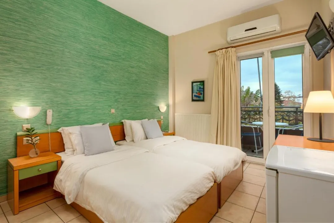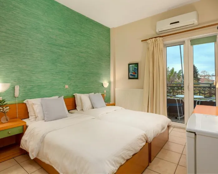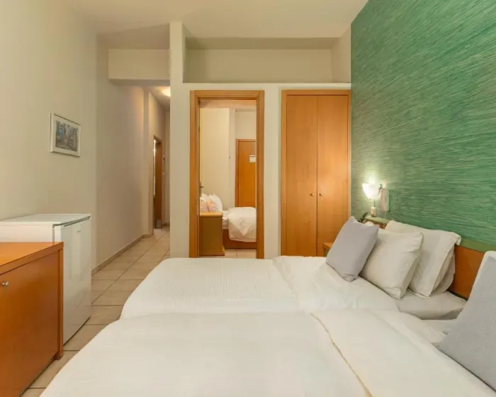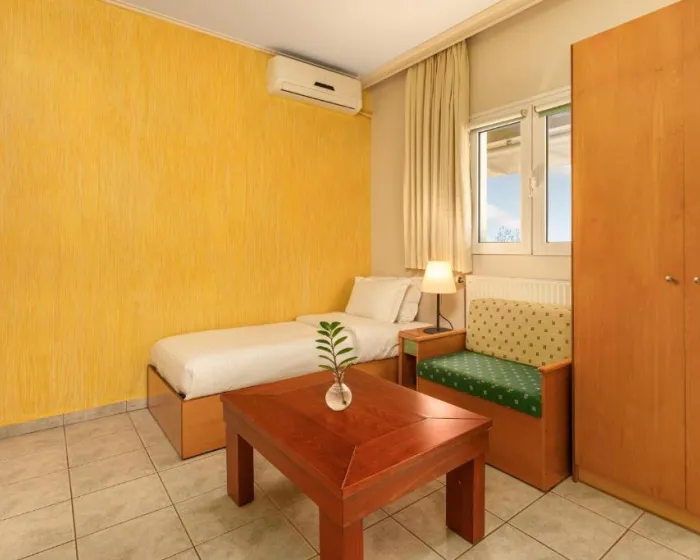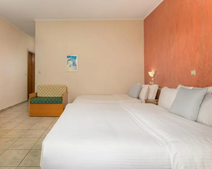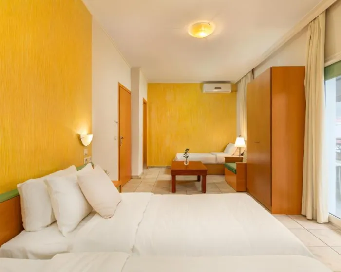 Deca do 1.99 godina borave besplatno, bebi krevetac najaviti blagovremeno.Ukupno 28 soba: Singles (~18 m²), Doubles (~18-25 m²), Triples (~18-25 m²).U sobama: klima, SAT TV, telefon, Wi-Fi internet, mini frižider, tuš, fen, balkon/terasa.Single Room (~18 m²) - francuski ležaj ili 2 odvojena ležaja. Double Room (~18-25 m²) - francuski ležaj ili 2 odvojena ležaja. Triple Room (~18-25 m²) - francuski ležaj i odvojeni ležaj. Tip dodatnog ležaja - standardni/fotelja-krevet.
