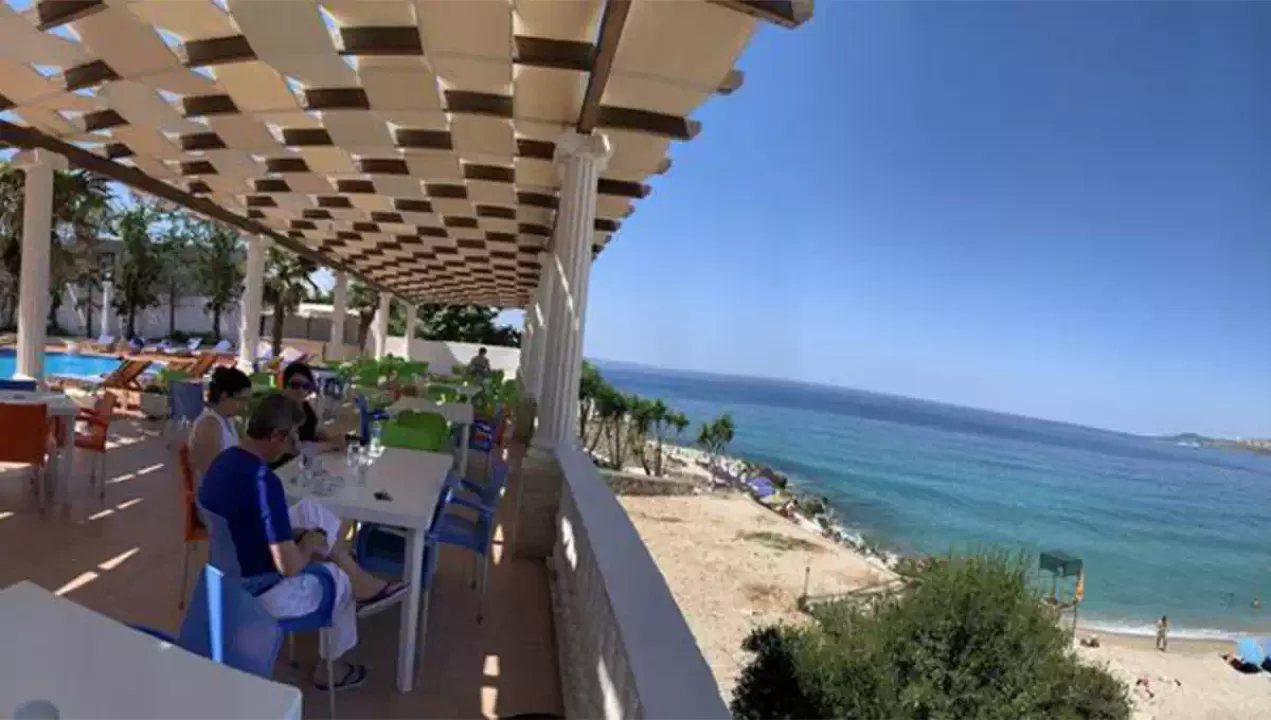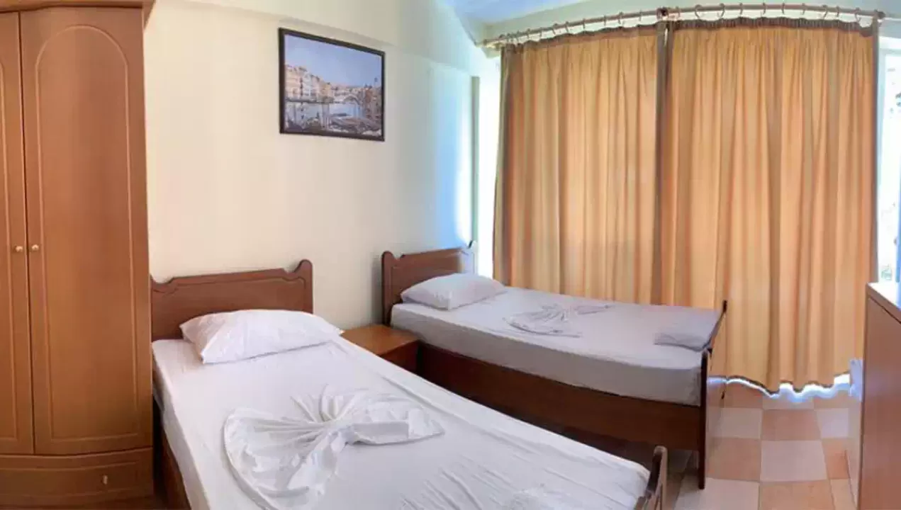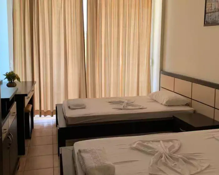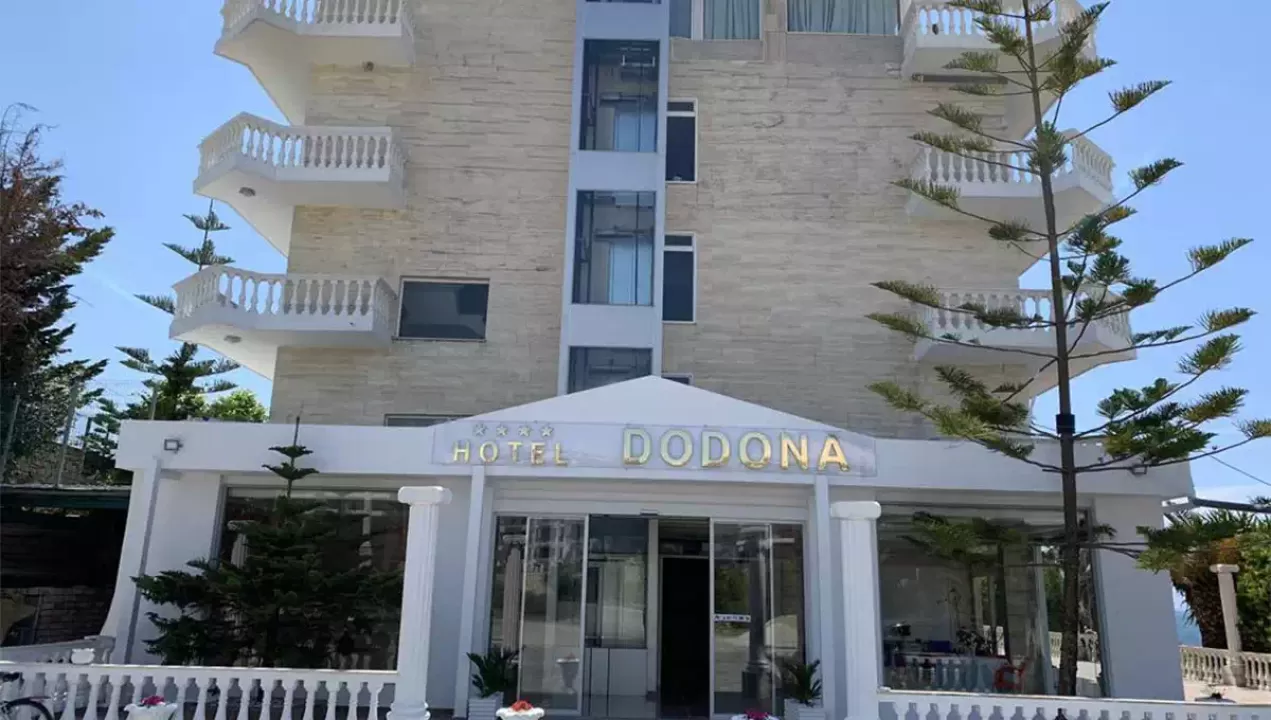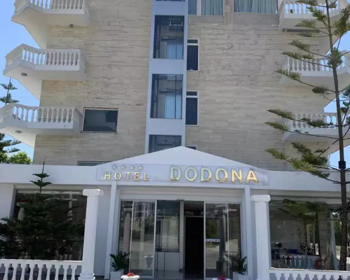 Hotel Dodona Saranda se nalazi na izlasku iz letovališta Saranda, na samoj obali mora, kod ušća reke Strumice u jonsko more. Ispred hotela se nalazi neuredjena plaža, a do prve plaže sa ležaljkama, suncobranima i barom ima oko 700 metara udaljenosti. Strogi centar Sarande je udaljen 6 kilometara. U kilometar udaljenosti oko hotela Dodona se nalaze mega market, apoteka, oslični mediteranski restorani i barovi, kao i benzinske pumpe. Hotel u svom sastavu ima standardne sobe, od kojih deo ima pogled na more, uz doplatu. U sklopu hotela je i odličan pool bar, otvoreni bazen, restoran.