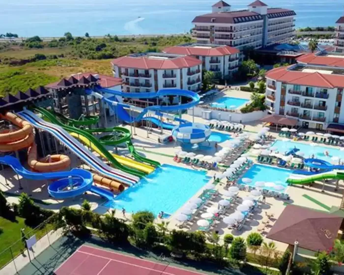 Hotel Eftalia Aqua Alanja se nalazi u regiji Turkler, 18 kilometara od grada Alanja, 100 kilometara od aerodroma u Antaliji. Hotel ima 470 soba koje su rasporedjene u dve glavne zgrade i pet trospratnih vila. Do plaže i Aqua parka Eftalia Island dolazi se podzemnim prolazom ispod puta. Plaža je šljunkovito-peščana, na pojedinim mestima krupniji šljunak, ulaz u more je peščan i postepen. Svi gosti hotela Eftalia Aqua mogu besplatno da koriste Aqua park površine 80.000 m², uključujući nekoliko bazena i sve tobogane ukupne dužine 875 metara.Ležaljke i suncobrani na plaži su besplatni. Peškiri za bazen i plažu uz depozit.