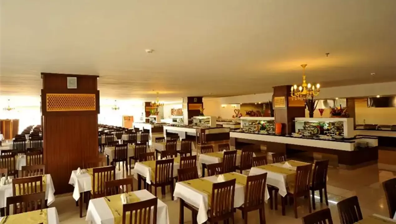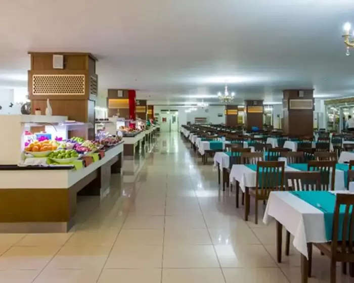 Ishrana: doručak, ručak, večera - ultra all inclusive (doručak, kasni doručak, ručak, večera (samoposluživanje - izbor više jela), u hotelu lokalna alkoholna i bezalkoholna pića po hotelskim terminima, točeno pivo, vino u čaši, sokovi, voda, čaj, neskafa, a la carte restorani - neophodna je rezervacija unapred. Na plaži u okviru kompleksa Eftalia Island: beach snack bar (12:00-16:00h), Beach bar (10:00-24:00h, uključena lokalna bezalkoholna pića i pivo).