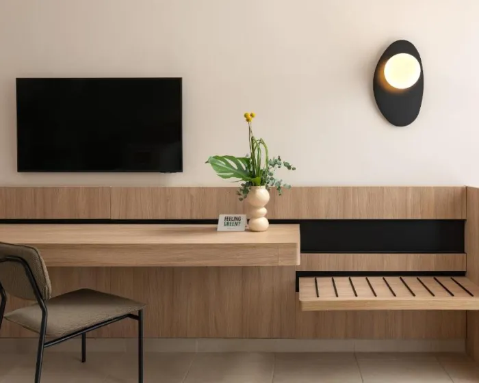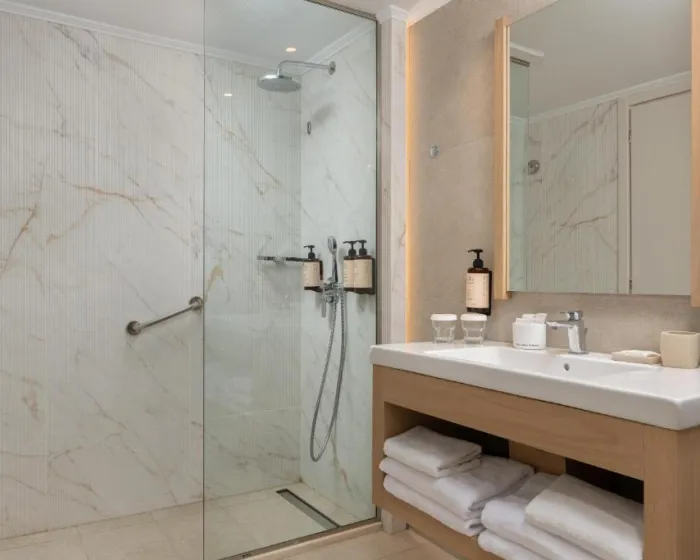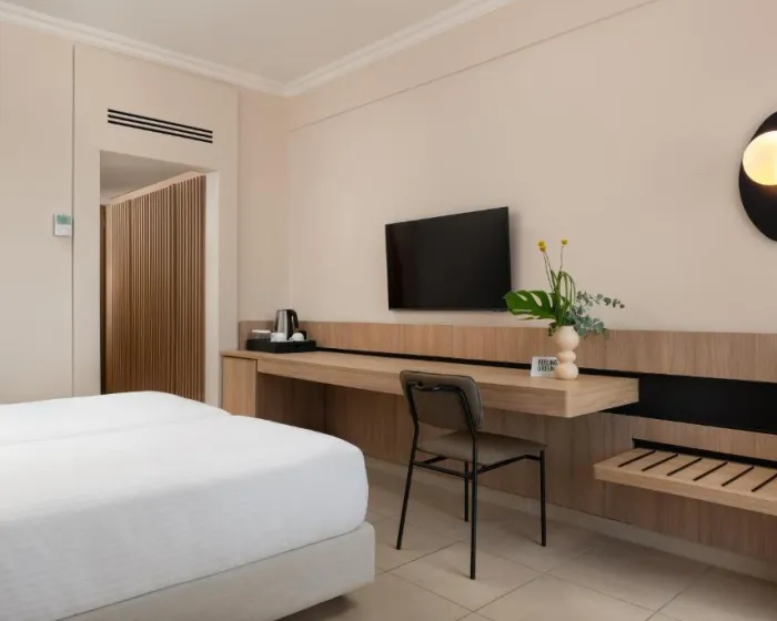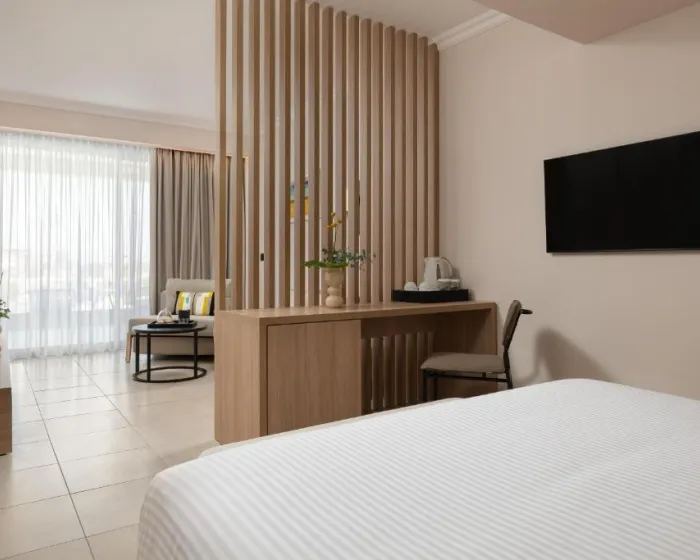 kupatilo, fen, bade mantili i papuče, aparat za čaj i kafu, SAT TV, klima-uredjaj, telefon, internet (doplata), mini-bar, sef i balkon