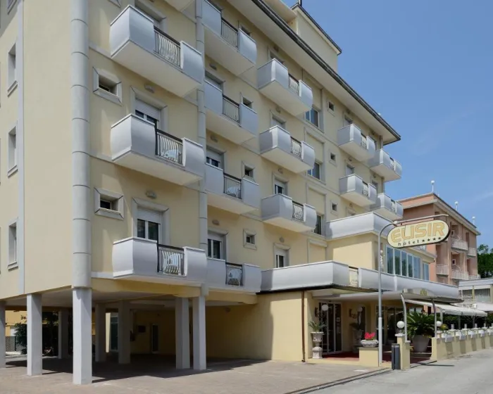 Hotel Elisir Rimini nalazi u Riminiju, na 80 metara udaljenosti od plaže. Hotel ima lift i ima 44 sobe. Osoblje na recepciji je ljubazno i srećno odgovara na sva pitanja. Usluge poput usluge čuvanja prtljaga i sefa osiguravaju udoban boravak. Bežični pristup internetu omogućava gostima da ostanu povezani tokom odmora. Hotel ima pristupačne sadržaje za osobe sa invaliditetom. Svakodnevne potrepštine mogu se kupiti u supermarketu. Bašta pruža dodatni prostor za odmor i opuštanje na otvorenom. Dodatni sadržaji uključuju TV sobu. Gosti koji dolaze automobilom mogu parkirati svoja vozila na parkingu. Dodatne usluge i sadržaji uključuju 24-satnu službu obezbeđenja, medicinsku pomoć, transfer uslugu, uslugu sobe, uslugu pranja veša i frizera. B