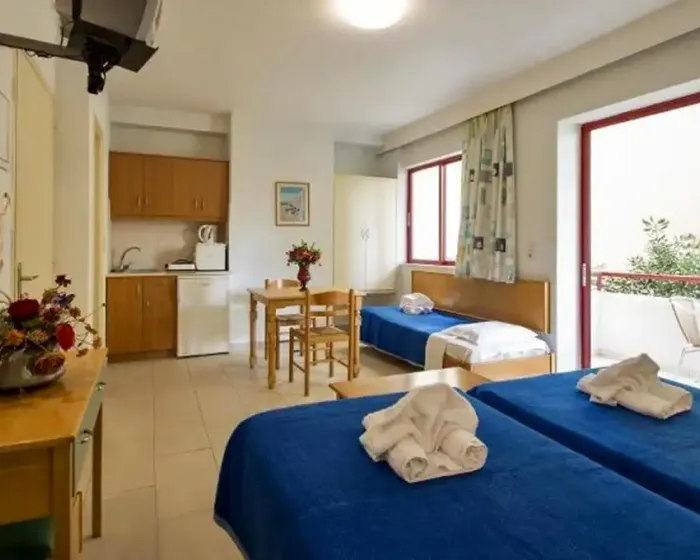 kupatilo, klima-uredjaj (uz doplatu), mini kuhinja, frižider, SAT TV, wifi internet, balkon ili terasa sa garniturom za sedenje