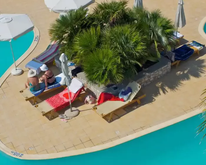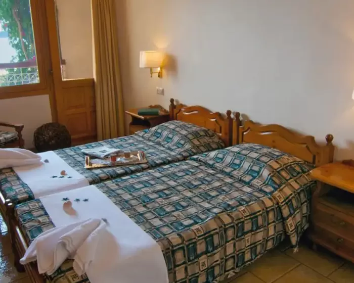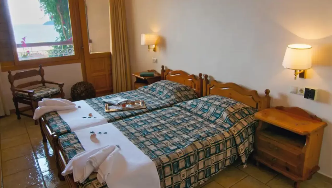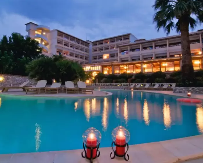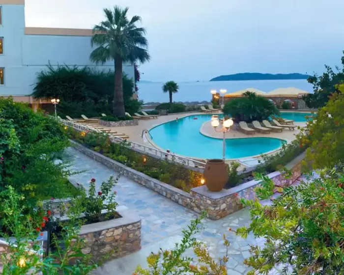 Bazen, bar pored bazena, restoran, taverna, teniski teren, suvenirnica, wi-fi internet na recepciji hotela, salon lepote i parking prostor. Prilagođen je i za osobe sa posebnim potrebama.Ležaljke i suncobrani su pored bazena besplatni za goste hotela, dok se na plaži dodatno doplaćuju.