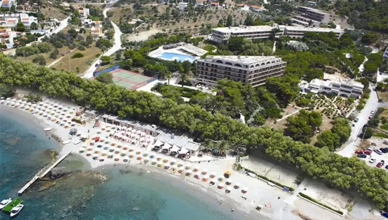 Hotel Everden Beach Saronida se nalazi u naselju Anavissos, na oko 47 kilometara od centra Atine i na oko 30 kilometara udaljenosti od centra Glifade. Najbliže naseljeno mesto, Saronida, udaljeno je oko 3 kilometra i povezano je sa hotelom gradskim prevozom. Izlazi na privatnu plažu do koje se stiže podzemnim prolazom, peškiri za plažu su dostupni uz depozit. Hotel ima ukupno 250 soba, usluga je polupansion ili pun pansion.