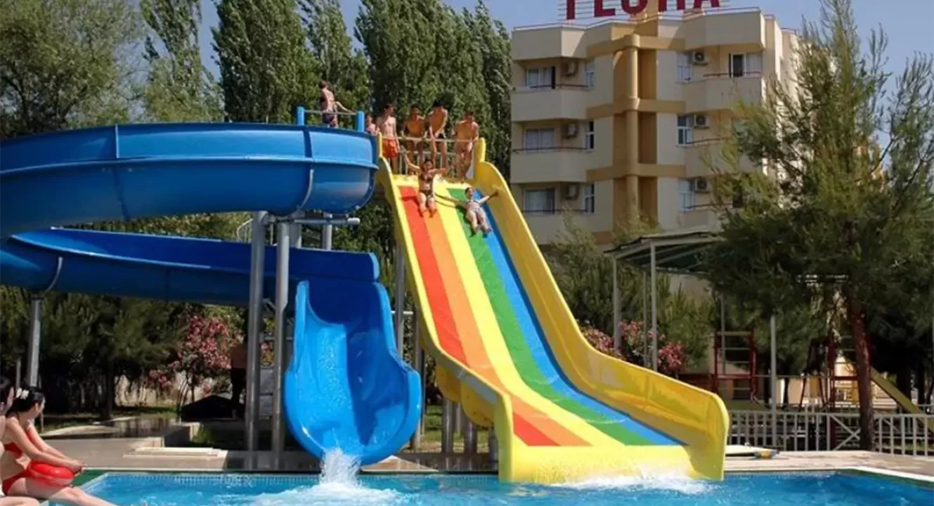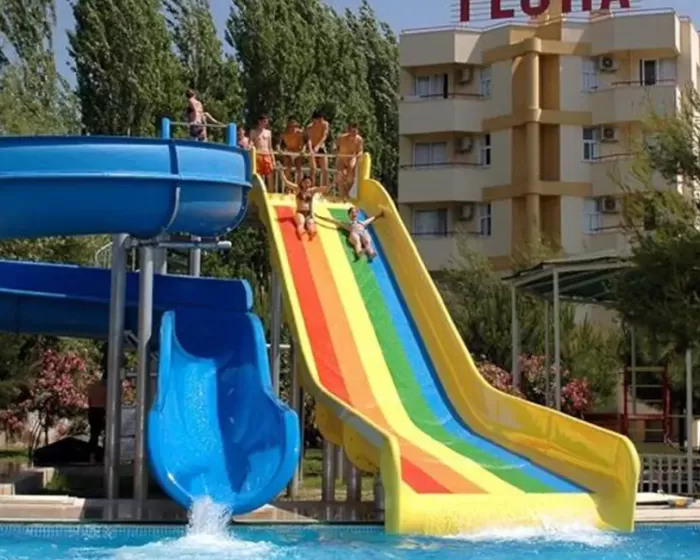 Hotel Flora Suites Kušadasi se nalazi na oko 700 metara udaljenosti od prelepe uredjene peščane plaže Kušadasija - Long beach. Centar grada udaljen je oko 6 kilometara od hotela, a hotel Flora poseduje šatl buseve koji besplatno prevoze putnike do centra Kušadasija. Hotelski kompleks prostire se na površini od 9.000 m² i poseduje 55 porodičnih dupleks apartmana za pet osoba, i 49 standard soba koje mogu ugostiti do tri osobe. Usluga u hotelu je all-inclusive.