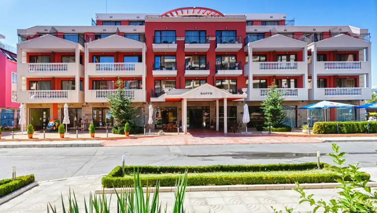 Hotel Forum Sunčev Breg se nalazi u južnom delu Sunčevog brega, na oko 250 metara od plaže i na oko 2 kilometara od Nesebara. Hotel ima 54 dvokrevetne sobe.