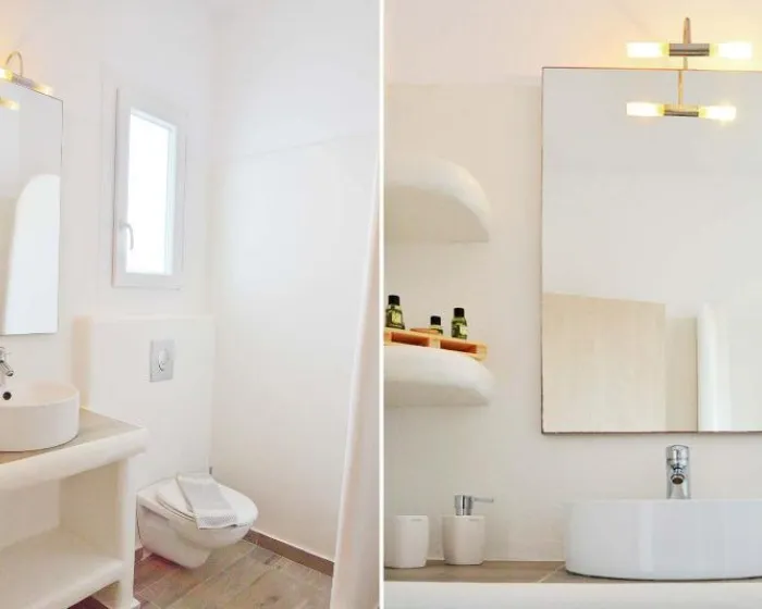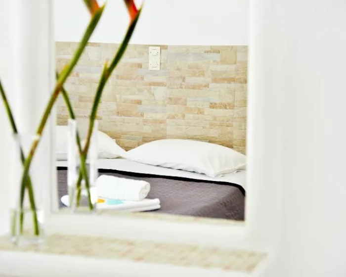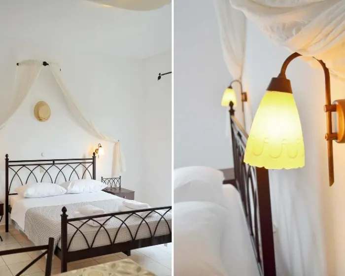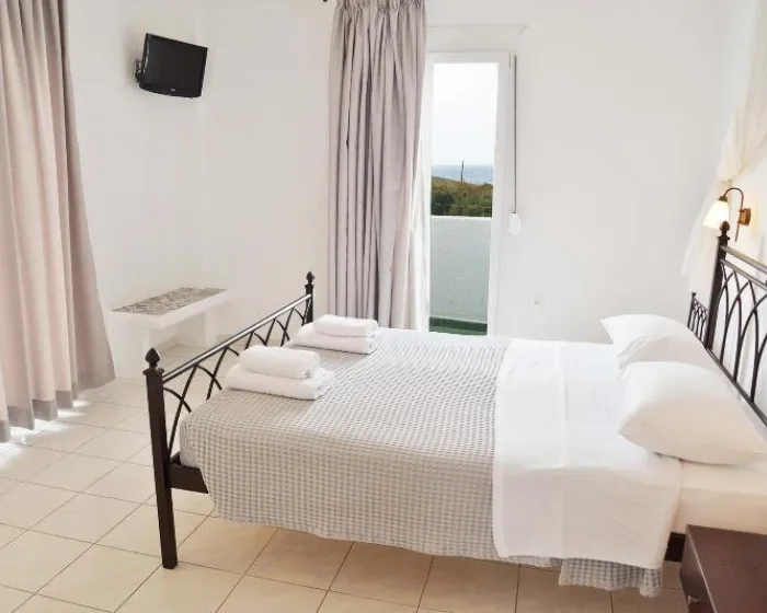 Sobe imaju kuhinju i kupatilo, a klima uređaj održava pravu temperaturu. U većini jedinica, gosti mogu uživati u pogledu na more sa balkona ili terase. Sobe imaju francuski ležaj i kauč na razvlačenje. Dostupne su odvojene spavaće sobe. Dodatni kreveti mogu biti zatraženi. Mini bar je dostupan. Kuhinjica dolazi sa frižiderom, mikrotalasnom pećnicom i aparatom za čaj/kafu. Direktno biranje telefona, TV, radio i WiFi (bez dodatne naplate) pružaju sve neophodno za udoban odmor. Kupatila uključuju fen za kosu i opremljena su tuš kabinom i kadom. Hotel ima sobe za nepušače.