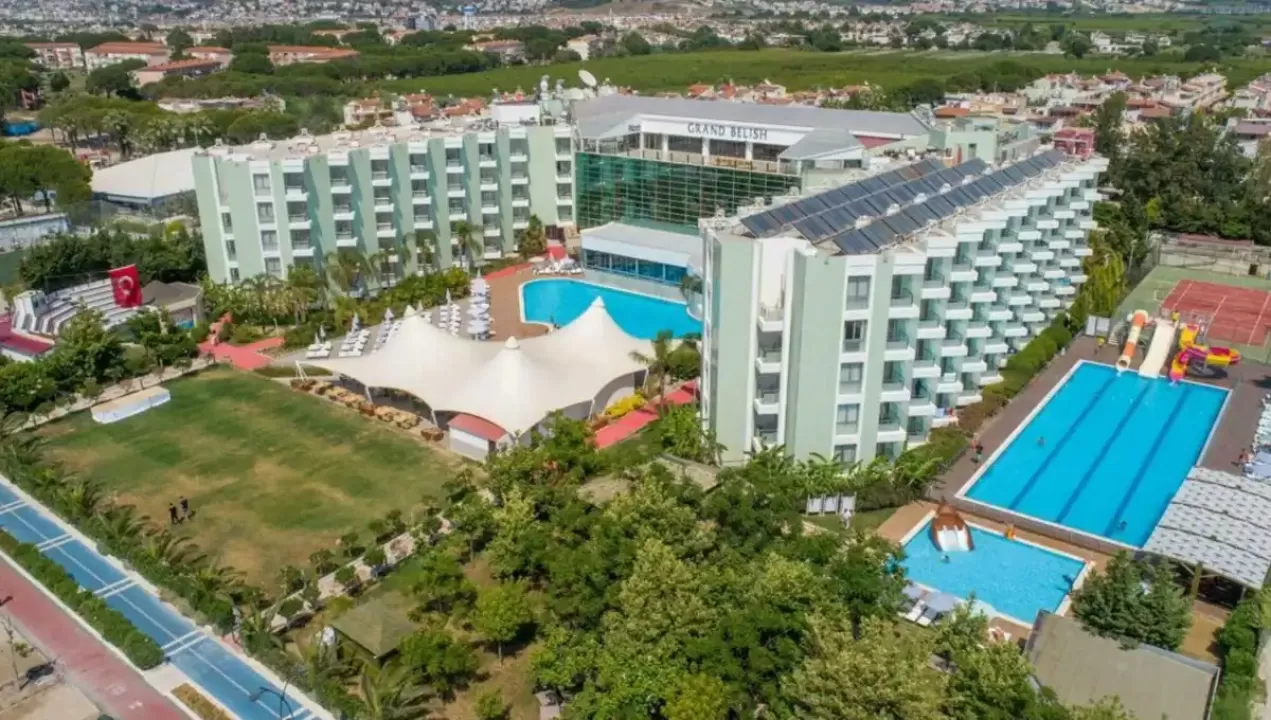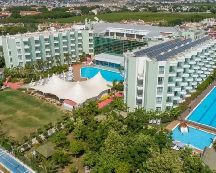 Hotel Grand Belish Kušadasi je porodični hotel koji se nalazi na peščanoj plaži , 12 kilometara od centra Kušadasija. Hotel je otvoren 2010. godine i u svojom ponudi ima 177 komfornih i moderno uredjenih soba, koje su rasporedjene na pet spratova. Hotel Grand Belish nudi mnoštvo različitih sadržaja za sve uzraste, što će svakako vaš odmor učiniti sadržajnim i zanimljivim.