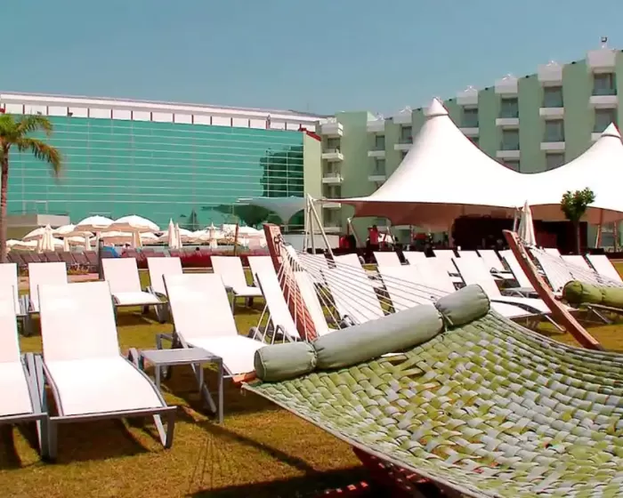 recepcija, glavni restoran ,mediterantski restoran, pet barova, otvoreni bazen, unutrašnji bazen, bazen za decu, tenis, fitnes, sauna, đakuzi, tursko kupatilo, masaža, salon lepote, diskoteka, igraonica, bežični internet u lobiju, frizer, animacija. Ponuda za najmladje: bazen za decu, mini klub za decu , dečije igralište, animacija. Sportske aktivnosti: stoni tenis, tenis, bilijar, odbojka na plaži, fudbal, košarka, mini golf, sportovi na vodi. Usluge i aktivnosti uz doplatu: sva pića u periodu 00:00-09:59h, pića u disco baru od 00:00-02:00h, uvozna pića, mini bar, turska kafa, sveže ceđeni sokovi, upotreba a la carte restorana drugi put, sobna usluga, masaža, salon lepote, frizer, telefon, osvetljenje za teniski teren, sportovi na vodi, internet. Ležaljke, peškiri (uz depozit) i suncobrani na plaži su besplatni