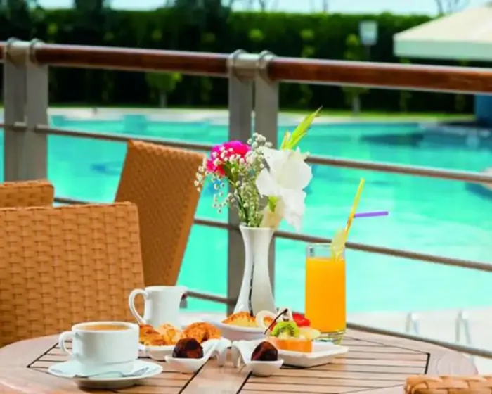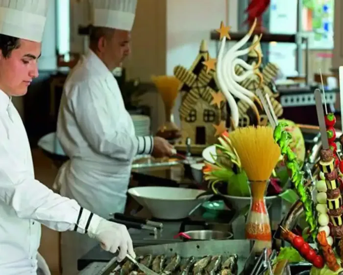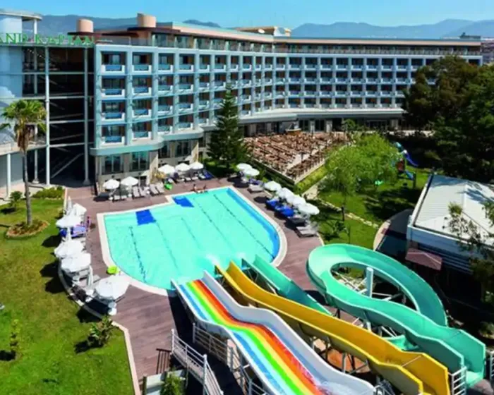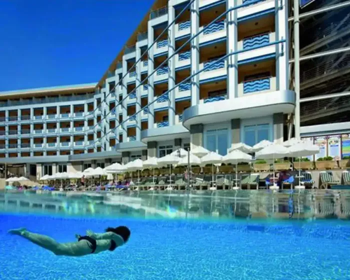 Glavni restoran, A’la Carte restorani-riblji i italijanski, lobi bar, bar pored bazena, bar na plaži. Posebno se plaćaju prema pravilima hotela: usluga lekara, čuvanje dece, usluga pranja i peglanja veša, telefon, fax, internet kutak, frizer, prodavnice, rent a car. Wi Fi je besplatan u zajedničkim prostorijama.Otvoreni bazeni za odrasle i decu, 3 tobogana, fitnes centar, tursko kupatilo, sauna,parno kupatilo, odbojka na plaži, stoni tenis, zabavni program tokom dana, takmičenja na plaži i pored bazena, večernji šou program, mini klub za decu od 4 do 12 godina, igralište. Posebno se plaćaju prema pravilima hotela: sportovi na vodi, masaža, Wellness centar, kompjuterske igre, bilijar.