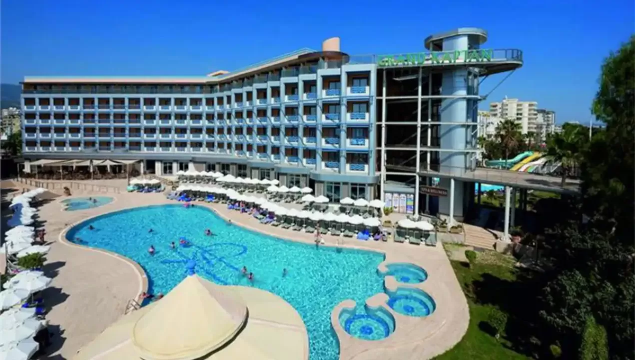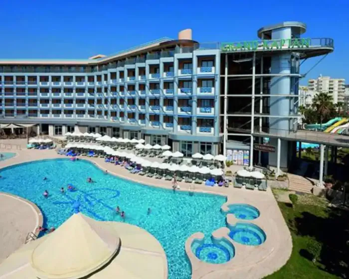 Hotel Grand Kaptan Alanja se nalazi u oblast Obagol u Alanji, udaljen je oko 5 kilometara od centra Alanje i oko 130 kilometara od aerodroma Antalija. Hotelska privatna peščana plaža je sa ležaljkama, suncobranima i peškirima za plažu koji se ne naplaćuju. Postoji tunel ispod puta koji vodi do plaže. Hotel ima ukupno 334 sobe, usluga je ultra all inclusive.