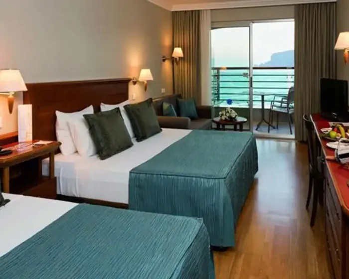kupatilo sa kadom ili tuš kabinom, fen, klima-uredjaj, telefon, mini bar (voda i bezalkoholna pića se dopunjuju svakodnevno), sef, ketler, set za čaj i kafu, SAT-TV i muzički kanali, balkon ili terasa sa garniturom za sedenje