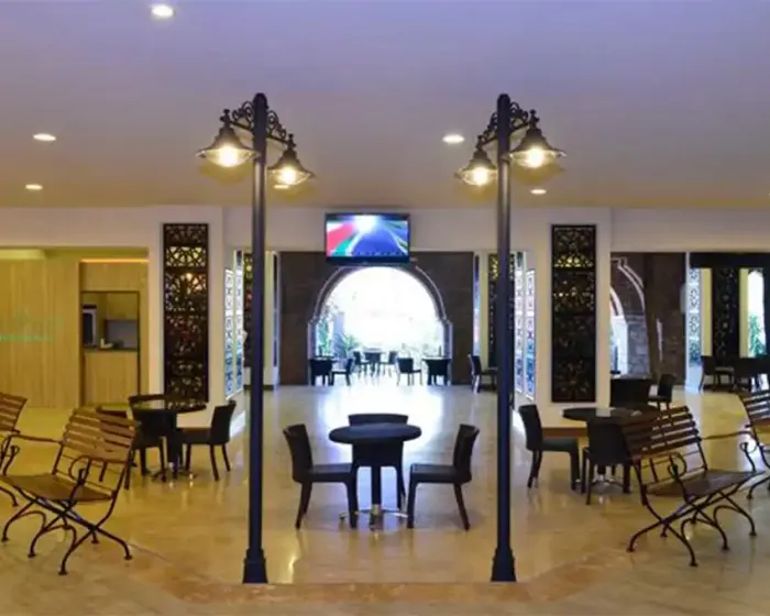 recepcija, glavni restoran, snek restoran i poslastičarnica, tri a la carte restorana (uz dopaltu), tri bara, spa centar, dečiji klub, teren za tenis, odbjka na plaži, sportovi na vodi, dnevna i večernja animacija, mini club, aquapark, dečiji bazen, tereni za igru, tenis, odbojka na plaži, sportovi na vodi, stoni tenis, pedalina, kanu, bilijar