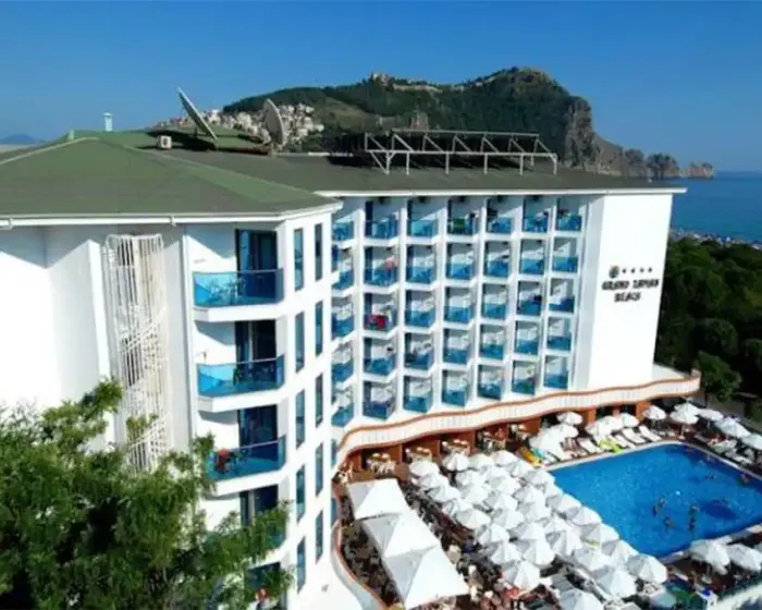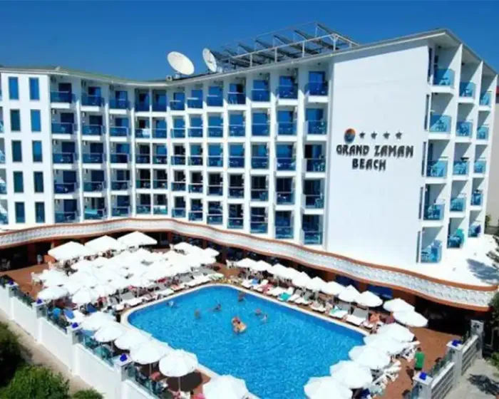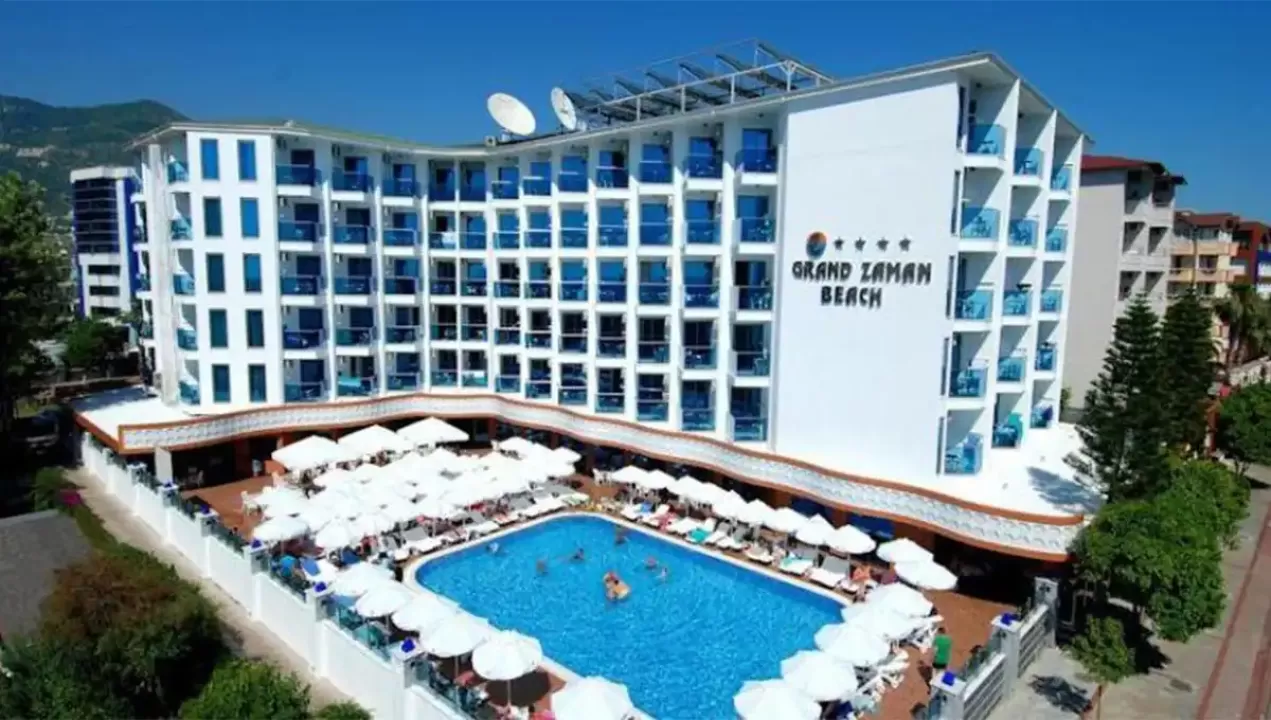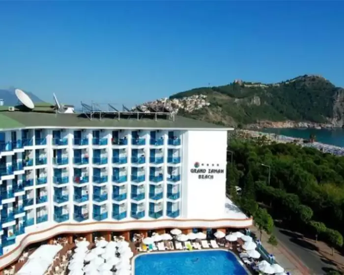 Hotel Grand Zaman Beach Alanja se nalazi na oko 50 metara udaljenosti od Kleopatrine plaže, u širem centru letovališta Alanja. Hotel ima 170 soba.Suncobrani, ležaljke i peškiri za plažu se doplaćuju.