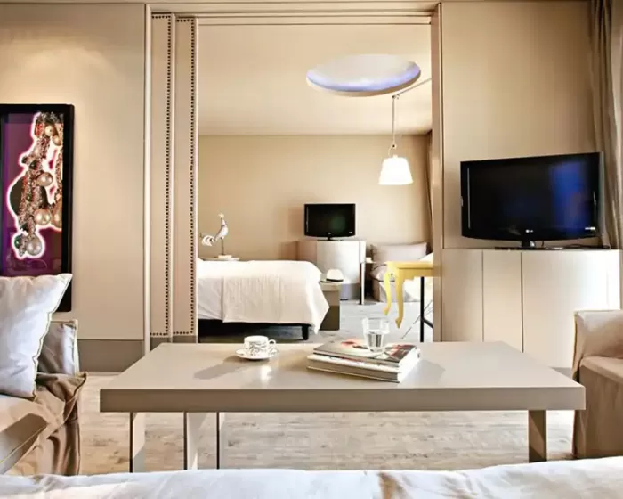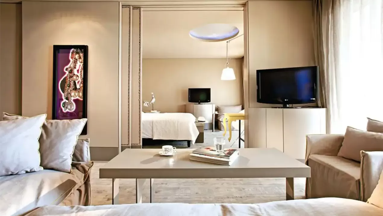 Suite Astirsalon sa tapaciranim nameštajem, kupatilo, dvokrevetne sobe i bade mantili i papuče, mini bar.