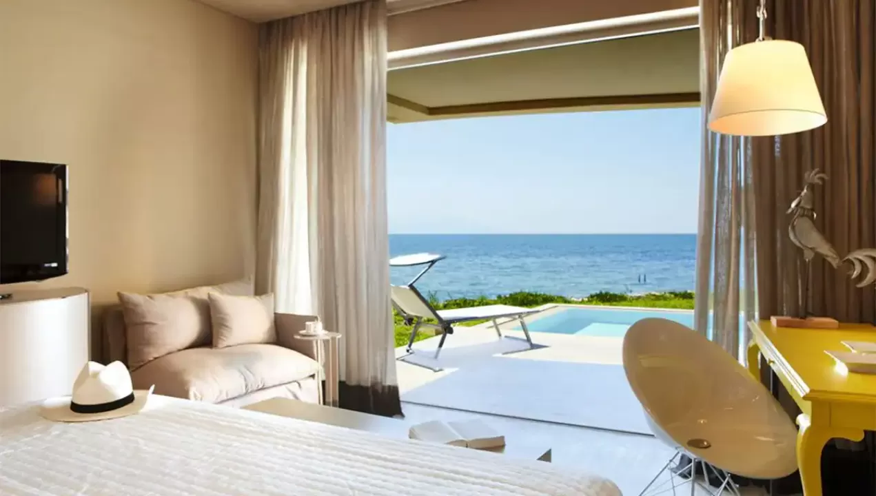 Double Executive - Astir Sea View Dnevni boravak, pogled na more, francuski ležaj ili dva odvojena ležaja, terasa.Double Executive-Astir Private Pooldnevni boravak, francuski ležaj, terasa, privatni bazen.