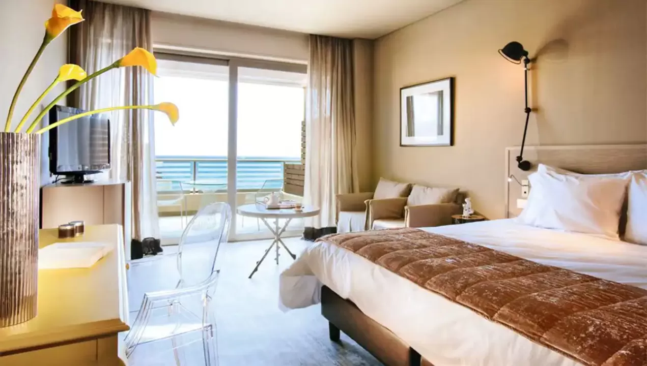 Junior Suite dnevni boravak, francuski ležaj, kupatilo, mantili i papuče, mini bar.