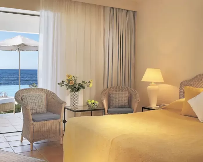 Sobe imaju klimu / grejanje, frižider ili mini - bar (doplata na licu mesta), satelitski LCD TV, muzički kanali, direktna telefonska linija, sef, kupatilo (kada) / WC, bade mantili i papuče, fen, balkon / terasa, set za pripremu (kafa / čaj).Standard soba GV or MV  Smeštene su u svim objektima, sa pogledom ka bašti ili na planine. Veliki bračni krevet ili dva odvojena kreveta. pomoćni ležaj - kauč na razvlačenje. Kupatilo.Superior Room Sea View  Nalazi se u svim zgradama u hotelu, pogled na more, balkon natkriven (8 m²) Kompletno renovirane sobe, otvorena spavaća soba sa bračnim krevetom. Opremljeno  kupatilo i odvojena tuš kabina sa pogledom na more, od poda do plafona prozori sa panoramskim pogledom na more i balkon Luxury Sea View Room  Nalazi se u svim zgradama u hotelu, pogled na more, balkon natkriven(16m²).   Prostrane nove sobe - francuski ležaj i dnevni boravak sa sofom, koji se može koristiti kao pomoćni ležaj za dete. Garderober, kupatilo i poseban tuš sa pogledom na more. Od poda do plafona prozori sa panoramskim pogledom na Kritsko more i 2 natkrivene terase sa nameštajem za terasu. Prestige Sea View Bungalow  Smešten u  beloj zgradi sa pogledom na more. Otvorena bašta (25-30 m²) Kompletno renoviran bungalov u sred bašte. Spavaća soba sa bračnim krevetom, kupatilo i dnevni boravak sa sofom. Prozori od poda do plafona ,kombinovani otvoreni i zatvoreni prostor u sobi.Prestige Sea View Bungalow, ShPool Najbolja lokacija u svim zgradama u hotelu, pogled na more, otvorena bašta do 40 m², sa direktnim pristupom na bazen. Prostrane sobe, na prvoj liniji na ivici bazena. Spavaća soba sa bračnim krevetom, novi dekor i dizajn nameštaja. Sobe sadrže kupatilo i prednji dnevni boravak sa sofom. Prozori od poda do plafona ,kombinovani otvoreni i zatvoreni prostor u sobi.Junior Family Sea View Nalaze se u svim zgradama u hotelu, pogled na more, balkon natkriven (8 m²)U sobi - francuski ležaj i dnevni boravak sa  dve sofe koje se mogu koristiti kao pomoćni ležaj za decu. Prostrana kupatila, tuš sa pogledom na more. Sobe imaju prozore od poda  do plafona s panoramskim pogledom na more i balkon sa nadstrešnicom sa  nameštajem za terasu.Family soba Nalazi se u zgradama, WHITE, BLUE & RETHYMNO. Prostrani bungalovi sadrže 2 sobe: dnevni boravak i spavaća soba sa kliznim vratima (u nekim sobama). Pogled planine/bašta. U salonu 2 sofe na razvlačenje,a u spavaćoj sobi veliki bračni krevet.Family Apartment  Nalazi se u zgradama BLUE, RETHYMNO & PALACE. Pogled planine/bašta. Dnevni boravak, soba i 2 kupatila.U dnevnoj sobi 2 sofe koje se mogu koristiti za smeštaj dece, u glavnoj spavaćoj sobi - veliki bračni krevet. Family apartmani su povezani sa dvokrevetnim sobama za goste, formirajući prostranu porodičnu sobu.Family Luxe suite sea View   Nalazi se u svim zgradama u hotelu, sa pogledom na more, 2 balkona pod nadstrešnicom (16 m²). Odlična prostrana soba sa pogledom na more, dve sofe koje se mogu koristiti kao pomoćni ležajevi za decu. Prostrano kupatilo. Spavaća soba, odvojena kliznim vratima - francuski ležaj, poseban tuš sa pogledom na more i prostor za garderobu (u nekim sobama). Sobe su velike i imaju staklene prozore od poda do plafona, 2 balkona sa panoramskim pogledom i  nameštaj za terasu.Grand Family suite sea View  Nalazi se u delu PALACE. 2 balkona pod nadstrešnicom (16 m²). Dnevna soba sa pogledom na more - 2 sofe koje se mogu koristiti kao pomoćni ležaj za decu. Privatno kupatilo. Odvojena spavaća soba - francuski ležaj, tuš kabina sa pogledom na more i prostran garderober, koji povezuje dnevni boravak sa drugom spavaćom sobom sa odvojenom tuš kabinom i garderoberom. Ove sobe imaju od poda do plafona stakla sa panoramskim pogledom na kritsko more i 2 natkrivene terase sa nameštajem za terase.Famous Class smeštajPetit “Yali” ShPoolSeafront suite   Nalazi se na plaži, sa pogledom na more, u delu BLUE & Retimno sa direktnim pristupom bazenu. Otvorena bašta 25-30 m².  Ekskluzivne sobe su idealne za romantičan odmor. Dnevni boravak  i otvorena spavaća soba - 2 sofe u dnevnoj sobi, spavaća soba - francuski ležaj, kupatilo i stakleni prozori od poda do plafona, u kombinaciji zatvoreni i otvoreni prostor u sobi. Ležaljke u bašti.Luxe Yali Seafront suitesharing Pool  Smešten u zgradama WHITE, BLUE & RETHYMNO , pogled na more.U spavaćoj sobi - bračni krevet, u kupatilu - dodatni tuš. Dnevna soba sa prostranim garderoberom i pogledom na more, može se koristiti kao spavaća soba za decu. Udobne  stolice u bašti i direktan pristup bazenu.Villa “Grand Lux Yali” PPool - U delu zgrade WHITE & PALACE, pogled na more, terasa (40 m²), privatni bazen (20 m²) se zagreva na 24 stepeni. U spavaćoj sobi - bračni krevet, u kupatilu - dva umivaonika, odvojena tuš kabina i kada sa pogledom na more i ekskluzivniom kozmetikom Eau de Grece. Klizna staklena vrata u dnevnom boravaku apartmana daju akcenat na otvorenosti prostora, može da primi dvoje dece. Prostrani garderober upotpunjuje osećaj udobnosti. Privatna terasa, zagrejan bazen  i tuš sa panoramskim pogledom na Kritsko more.