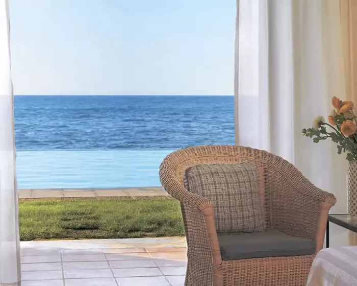 Hotel Grecotel White Palace Luxury Resort je smešten na samoj obali. Možete da se opustite na peščanoj plaži, u bazenu ili u bašti. Veliki izbor prostranih soba sa originalnim nameštajem. Idealan izbor za porodice. Novi, moderan izgled lepo renovirani hotel će impresionirati goste sa svojom originalnošću, modernosti i gostoprimljivosti. Oduzima dah egzotični arhitektonski minimalizam The White Palace hotela u Retimnu.  Ukusna autentična kuhinja u kombinaciji sa besprekornom uslugom u opuštenoj atmosferi praznika prirediće nezaboravan odmor. Glavni akcenat je na arhitektonskom stilu koji naglašava jedinstvenu lokaciju hotela, gde svaka tačka ima spektakularan panoramski pogled na more i grad Retimno. Dominantan stil - minimalizam. Idealne proporcije, lakoća, čistota linije i boje, originalni dizajn inovacije daju hotelu luksuzan savremeni stil. Renoviranjem je transformisan prijem hotela i hol, saloni, unutrašnje i spoljne terase, kafići i restorani, sobe sa pogledom na more.