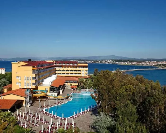 Hotel Halic Park Sarimsakli, se nalazi se na ostrvu Džunda, na obali zaliva povezan prevlakom sa Ayvalikom (2km), u mirnom delu van naselja Smešten na samo 250 m od plaže u sopstvenom vrtu, ovaj hotel predstavlja pravu oazu mira.