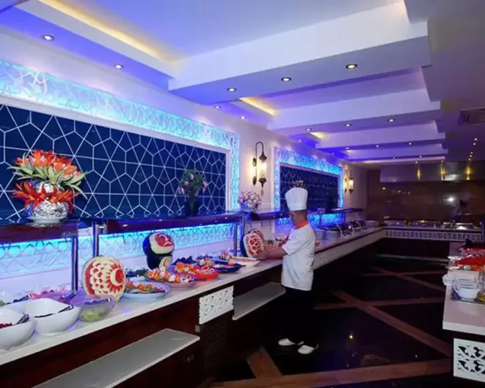 glavni restoran, lobi bar, bar pored bazena, usluga lekara, usluge pranja veša, telefon, fax, internet, otvoreni bazen sa delom za decu.