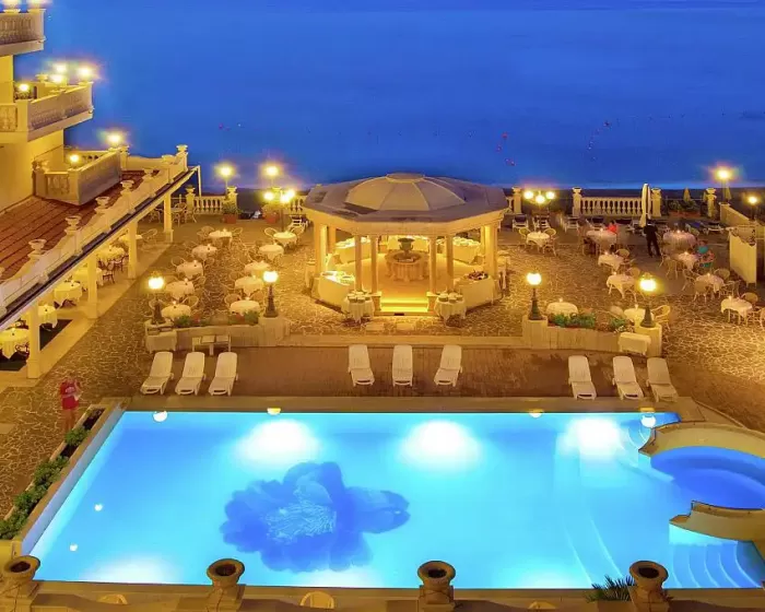 Hotel Hellenia Yachting Giardini Naxos Sicilija se nalazi na glavnom šetalištu, na sopstvenoj plaži, u delu Giardini Naxosa koji se zove Recanati. U neposrednoj blizini smeštaja nalaze se svi potrebni turistički sadržaji. Usluga je polupansion.