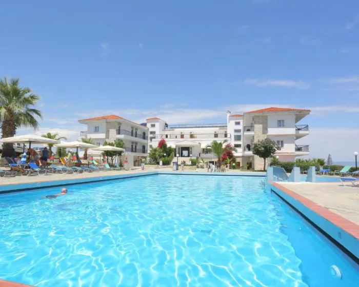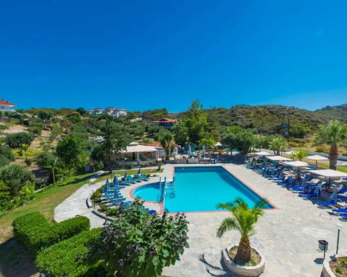 Hotel Hilltop Hanioti se nalazi na oko 700 metara udaljenosti od plaže, u letovalištu Hanioti. U blizini hotela se nalaze prodavnice. Hotel je renoviran 2013. godine i ima ukupno 50 soba. Autobuska stanica je na oko 400 metara od hotela.