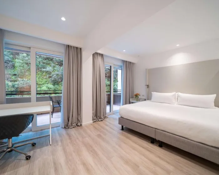 Klima uređaj i centralno grejanje obezbeđuju da sobe održavaju udobne temperature. Gosti mogu uživati u pogledu na more sa balkona ili terase. Kreveti za decu mogu biti zatraženi za mlađe goste. Sef, minibar i radni sto su takođe dostupni. Postoji potpuno opremljena čajna kuhinja sa frižiderom, mini frižiderom, mikrotalasnom pećnicom i aparatom za kafu/čaj. Direktno biranje telefona, televizor sa satelitskim/kablovskim kanalima, radio i WiFi (uz doplatu) pružaju sve neophodne stvari za udoban odmor. Papuče su uključene. Kupatila imaju tuš, kadu i bidet. Fen za kosu, bade mantili i telefon su obezbeđeni. Za dodatnu udobnost u kupatilima, gostima su ponuđeni kozmetički proizvodi. Gosti takođe mogu rezervisati sobe prilagođene za osobe u invalidskim kolicima sa kupatilima prilagođenim kolima. Hotel ima porodične sobe i sobe za nepušače.