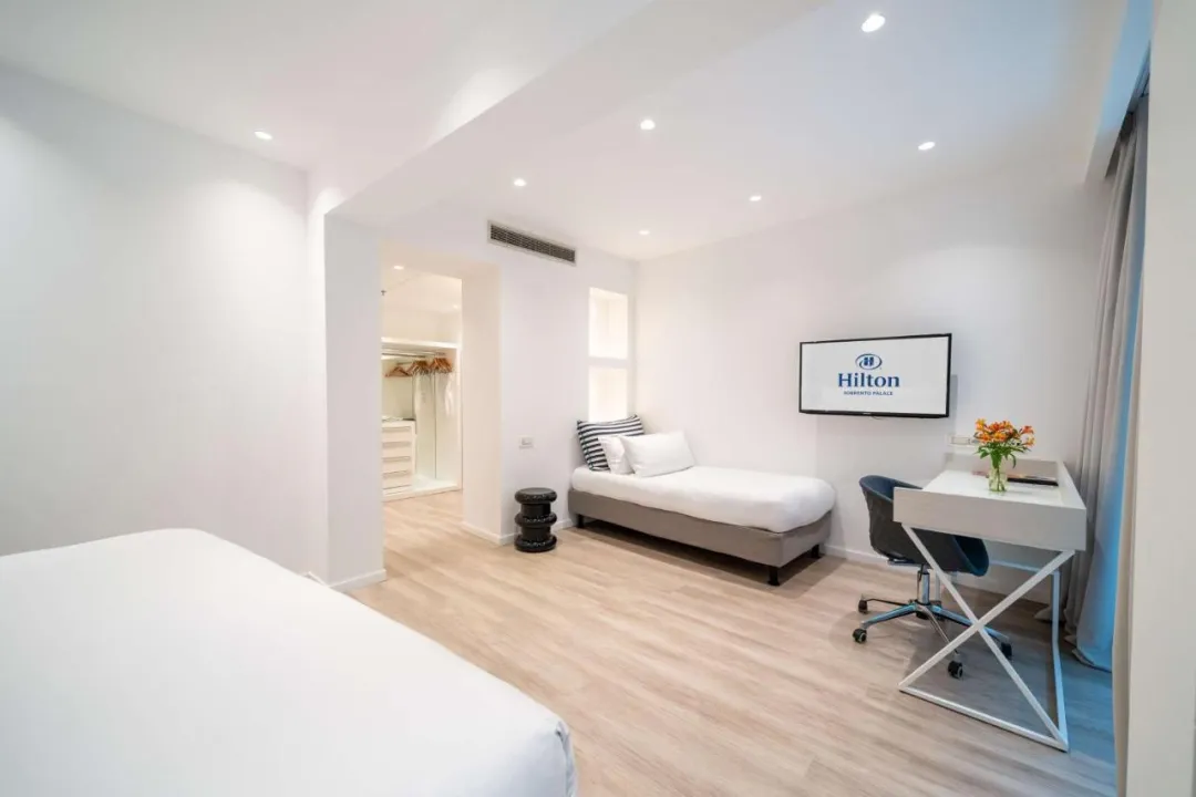Hotel Hilton Sorrento Palace  moderan hotel je okružen velikim mediteranskim vrtovima i nalazi se samo nekoliko minuta od živahne, istorijske stare gradske jezgro Sorrenta. Veze sa transportnom mrežom lako se mogu postići peške, jer su udaljene oko 1 km.