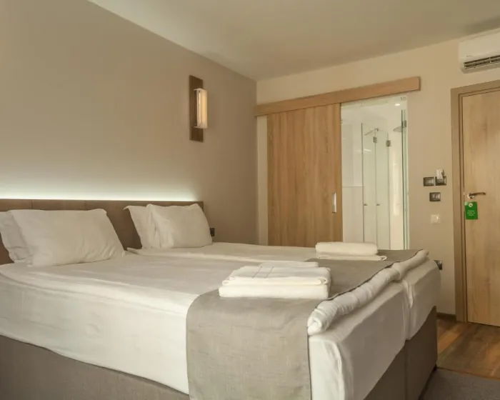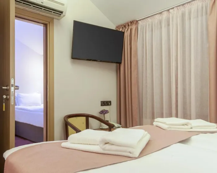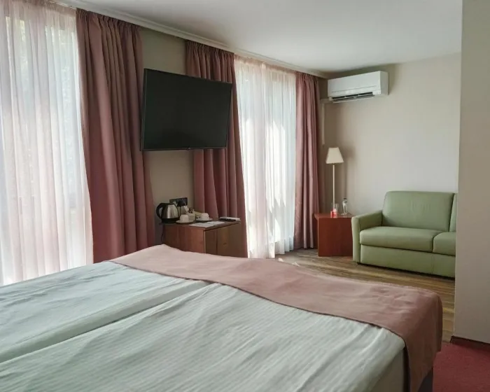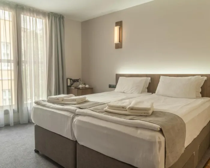 Sobe su opremljene centralnim grejanjem. Sobe imaju bračni krevet ili krevet queen size. Dodatni kreveti mogu biti zatraženi. Sef, minibar i radni sto su takođe dostupni. Gosti će takođe pronaći set za kafu/čaj među standardnim sadržajima. Set za peglanje je obezbeđen radi praktičnosti gostiju. Direktni telefonski poziv, televizor sa satelitskim/ kablovskim kanalima i WiFi (bez dodatne naknade) takođe su dostupni. U večernjim satima, usluga posluživanja omogućava dodatnu udobnost gostima. Fen za kosu i telefon su dostupni u kupatilima, koja uključuju tuš i kadu. Za dodatnu udobnost u kupatilima, gostima se nude kozmetički proizvodi. Hotel ima porodične sobe i 12 soba za nepušače.
