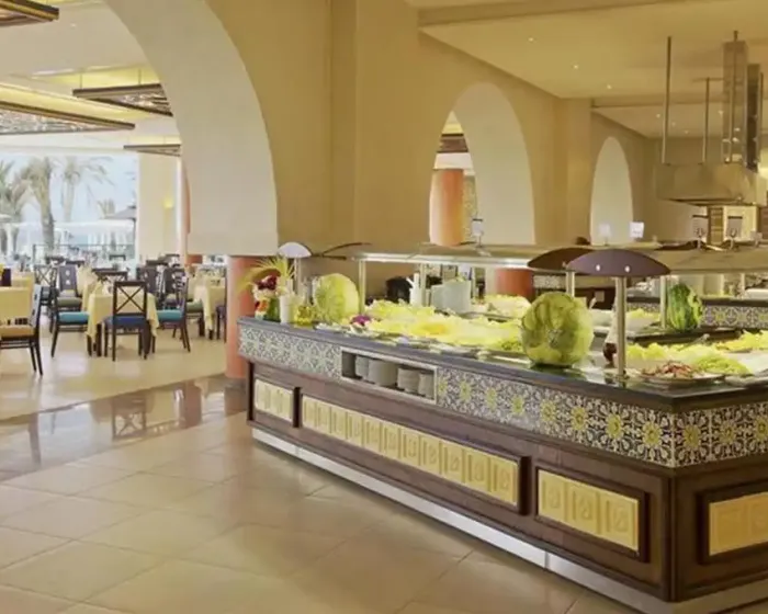 recepcija, spoljašnji bazen sa delom za decu, unutrašnji bazen sa delom za decu (greje se zimi), dečiji bazen, glavni restoran, međunarodni a la kart restoran, bar na plaži, snek bar, bar pored bazena, arapski bar, lobi bar, fitnes, teniski teren, luk i strela, fudbal, menjačnica, rent-a-car, pranje i sušenje veša, parking, diskoteka, mini klub, igralište i dečiji bazenSadržaji i aktivnosti uključene u cenu:Bežični internet na recepciji, zajedničkim prostorijama i u sobama, ležaljke, suncobrani i madraci za plažu, fit & fun program, animacioni šou programi, živa muzika, jednom nedeljno je organizovan folklorni program, stoni tenis, odbojka na plaži.Sadržaji i aktivnosti koje se doplaćuju:Peškiri za plažu, sobna usluga, usluge Spa centra (masaža, sauna, đakuzi, tursko kupatilo, bazen u Spa centru), uvozna pića, arapska kafa, nargile, piće u baru na plaži, u diskoteci i mini baru u sobi, sve usluge posle ponoći.