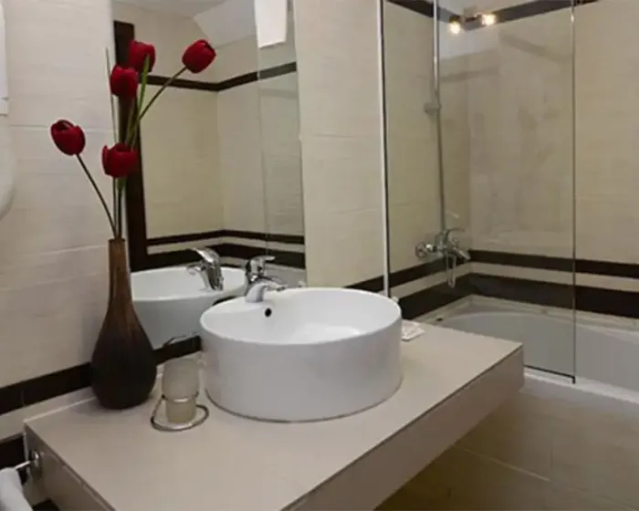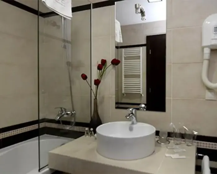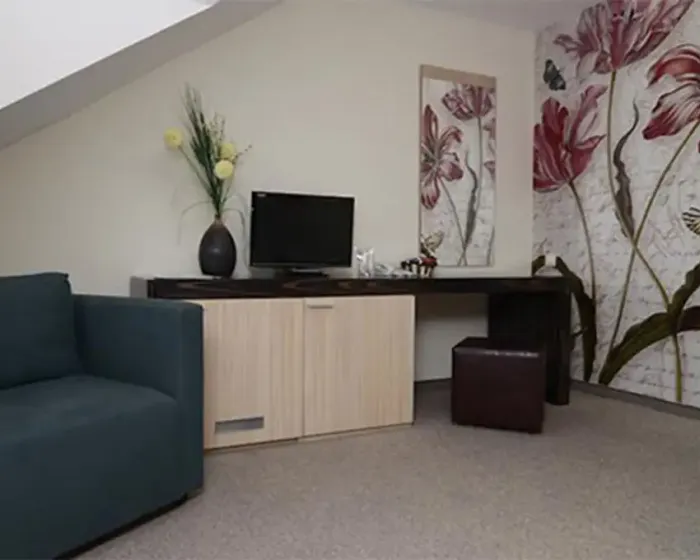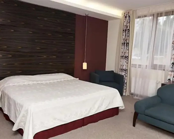 Suite sa dve spavaće sobe 45m², francuski ležaj, dva odvojena standardna ležaja I dva pomoćna ležaja, grejanje, balkon, TV SAT, telefon, pristup internetu, mini bar, fen, kupatilo, odvojene prostorije.