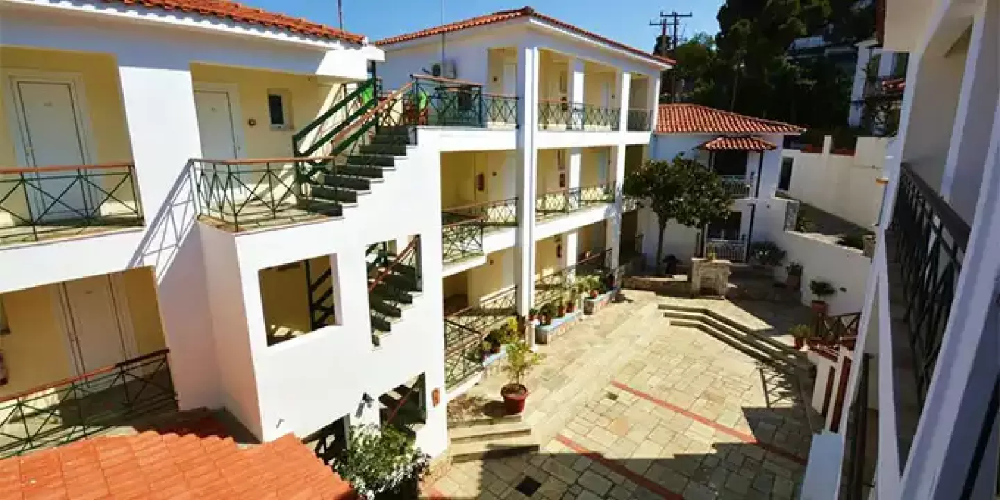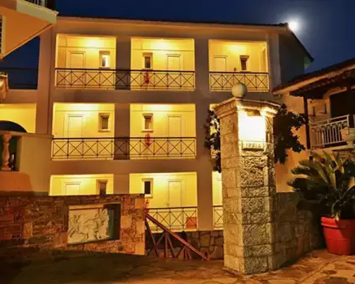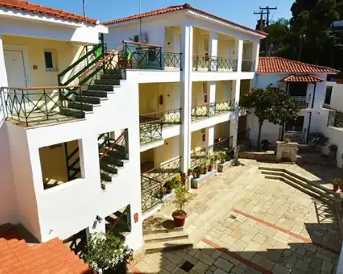 Hotel Ionia Skopelos grad Skopelos se nalazi u centru grada, na oko 150 metara udaljenosti od luke i na oko 500 metara od gradske plaže. U neposrednoj blizini smeštaja nalaze se svi potrebni turistički sadržaji. Hotel Ionia Skopelos grad Skopelos je izgradjen u tradicionalnom grčkom stilu i ima lepo uredjeno dvorište sa bazenom koji je na raspolaganju gostima. Usluga u hotelu je noćenje sa doručkom.