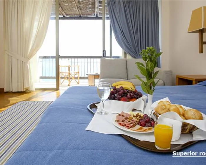 Maksimalan broj osoba u sobi je odredjen tabelom i stavkom \"Max Osoba\".Superior sobe  pogled more -  primaju do tri osobe. Sobe imaju balkon, klimu, kupatilo, fen, SAT TV, telefon, sef, radio, mini bar(na upit).Junior suite sa privatnim bazenom pogled more - primaju do 4 osobe. Sobe imaju balkon, klimu, kupatilo, fen, SAT TV, telefon, sef, radio, mini bar(na upit)Suite sa direktnim pogledom na more i privatnim bazenom - primaju do 3 osobe. Sobe imaju balkon, klimu, kupatilo, fen, SAT TV, telefon, sef, radio, mini bar(na upit)