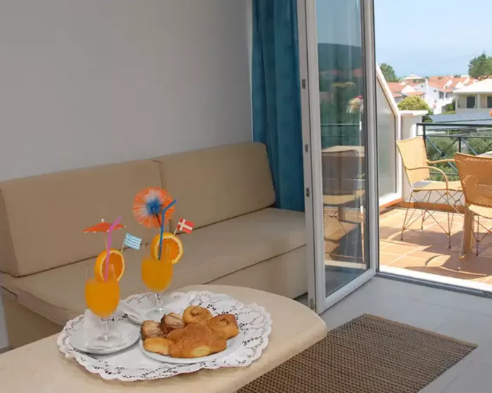 Ukupno 97 soba: Single Rooms (~18 m²), Double Rooms (~23 m²),Suites Classic (~40-50 m²).U sobama: klima, telefon, frižider, sef (uz doplatu, na licu mesta), SAT TV, kupatilo, fen, balkon/terasa.Single Room - francuski ležaj.Double Room - Francuski ležaj ili dva odvojena ležaja, pomoćni ležaj - sofa-na razvlačenje.Suites Classic - Spavaća soba (francuski ležaj ili 2 odvojena kreveta), dnevni boravak sa duplim kaučem ili 2 kauča na razvlačenje. Za 5 osoba (dete do 12 godina) - kauč na razvlačenje.