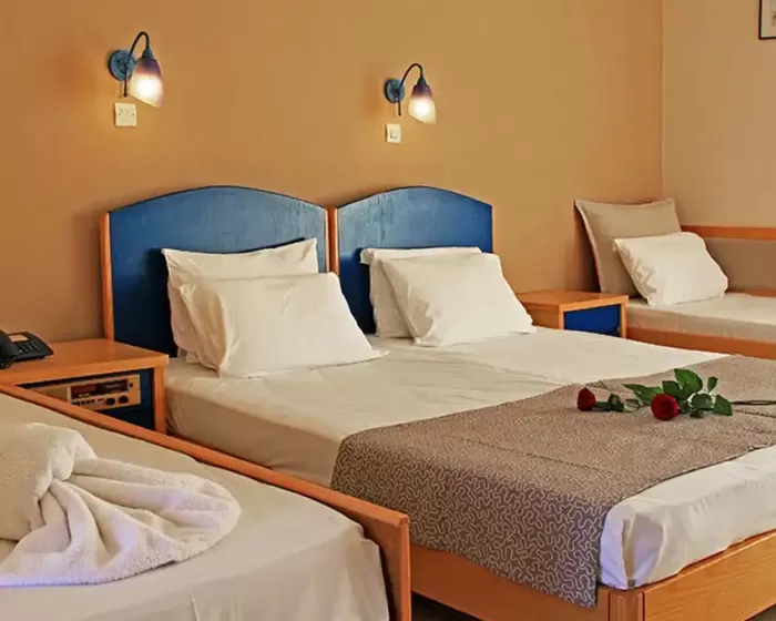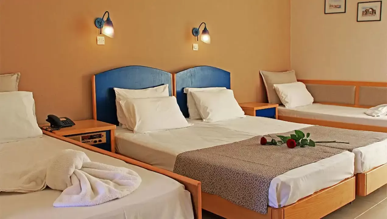 Ukupno 76 soba: Doubles-dvokrevetne (~25 m²), Quadruples-četvorokrevetne (~30 m²). Neke sobe su renovirane 2014. godine.
