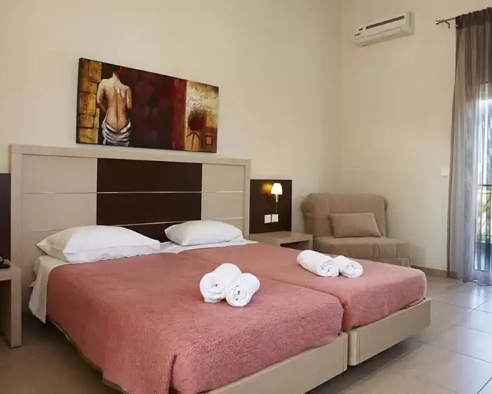 U sobama: klima-uredjaj, SAT TV, sef u pojedinim sobama (uz doplatu na licu mesta), frižider, kupatilo/tuš, fen, telefon, balkon/terasa. Max. do 3 odrasle osobe ili 2 odrasle + 2 deteta.