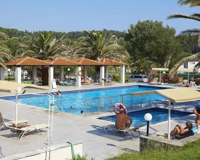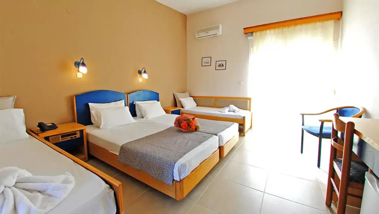 Hotel Iris Siviri se nalazi na oko 500 metara udaljenosti od peščano-šljunkovite plaže letovališta Siviri. Kompleks se sastoji od osam zgrada i ima ukupno 76 soba. Hotel je smešten na lepo uredjenom posedu sa dosta zelenila i zelenih površina. Autobusko stajalište je na oko 300 metara od hotela.Hotel je prilagodjen osobama sa posebnim potrebama.