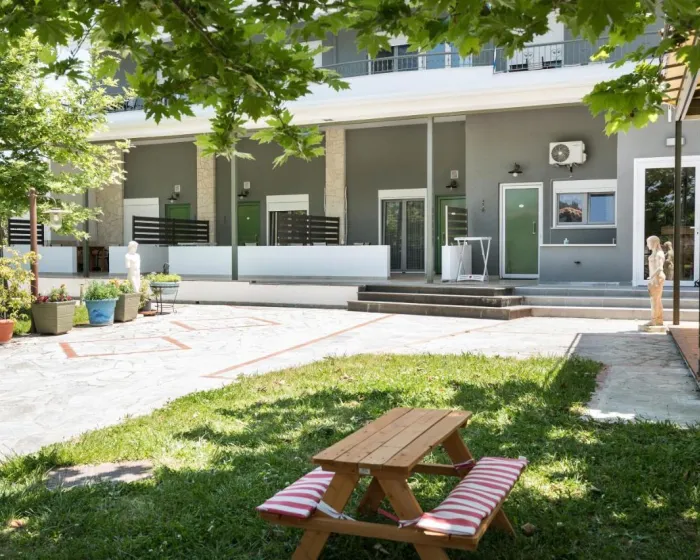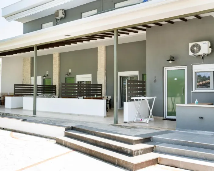Hotelski restoran nudi bogat izbor tradicionalnih grčkih jela, kao i vegetarijanske opcije, a svakog jutra služi se kontinentalni doručak sa lokalnim specijalitetima. Za uživanje na otvorenom, hotel ima lepo uređeno dvorište i terasu za sunčanje.