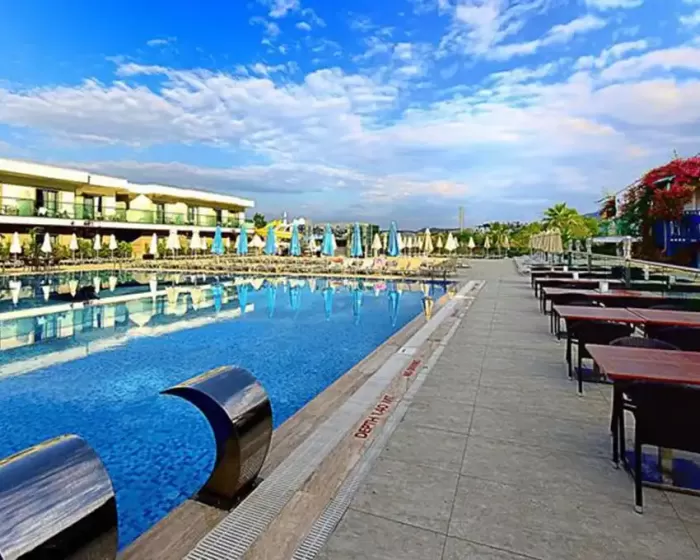 recepcija, osnovni restoran, a la carte restoran (internacionalni - besplatno jednom u toku boravka, uz rezervaciju), 5 barova, 4 spoljašnja bazena, 3 bazena za decu, 3 tobogana, jedan unutrašnji bazen, WiFi u lobiju hotela (besplatno), sauna, parno kupatilo, hamam, stoni tenis, pikado, teretana, animacije. Plaćaju se: masaže i tretmani u spa centru, doktor, sportovi na vodi, uvozna alkoholna pića, ceđeni sokovi, turska kafa.