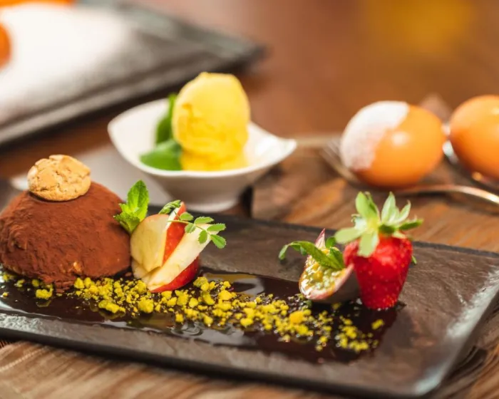 Različite opcije za obroke su dostupne, uključujući kafić i bar. Gosti mogu uživati u raznim specijalitetima u klimatizovanom, ne-pušačkom restoranu. Opcije ishrane uključuju noćenje sa doručkom, polupansion i pun pansion. Veliki doručak garantuje odličan početak dana. Za ručak i večeru, gosti mogu birati između a la carte i set menija. Dijetalni obroci i obroci za decu mogu biti pripremljeni na zahtev. Takođe su dostupne posebne opcije ishrane i snekovi.