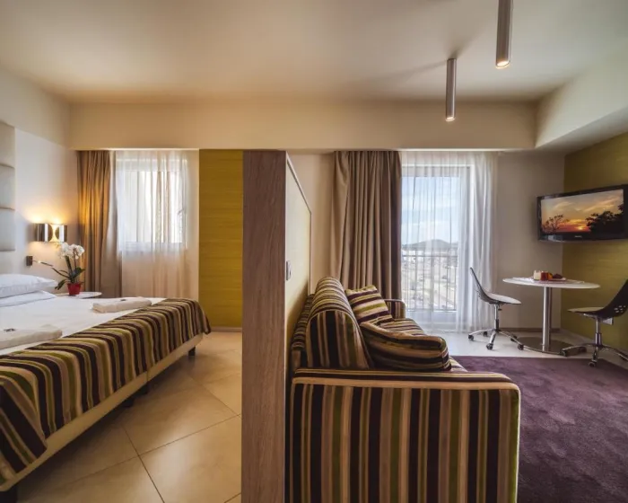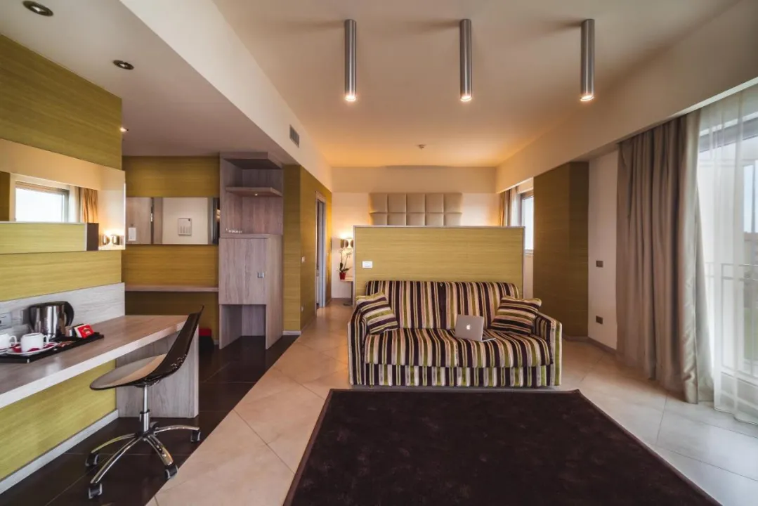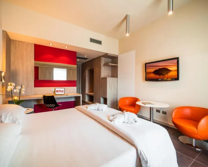 Klima i centralno grejanje osiguravaju udobne temperature u sobama. Balkon je standardna karakteristika nekih soba. Sobe imaju bračni krevet i sofu. Dodatni kreveti mogu biti zatraženi. Sef, minibar i radni sto su takođe dostupni. Gosti će takođe naći aparat za kafu/čaj među standardnim karakteristikama. Parna pegla je obezbeđena radi gostiće praktičnosti. Direktno biranje telefona, televizor sa satelitskim/ kablovskim kanalima, radio i WiFi su takođe obezbeđeni. Papuče su uključene. Kupatila su opremljena tušem, kadom i bideom. Fen i telefon su dostupni za svakodnevnu upotrebu. Kao dodatna pogodnost, kupatila pružaju kozmetičke proizvode. Gosti takođe mogu rezervisati sobe prilagođene invalidima sa pristupačnim kupatilima. Hotel ima porodične sobe, sobe za nepušače i sobe za pušače.