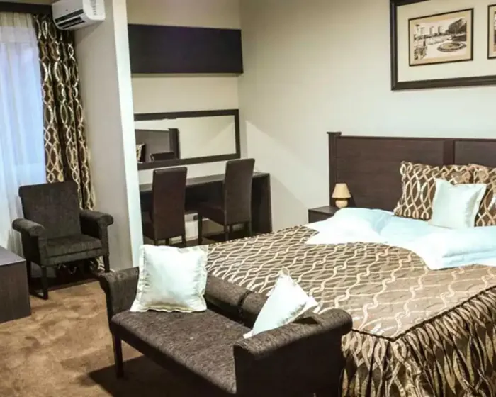 Hotel raspolaže sa 111 smeštajnih jedinica (kapaciteta do 250 gostiju) rasporedjenih u standardne: jednokrevetne sobe,dvokrevetne sobe, trokrevetne sobe, studija, porodične sobe, apartmane i lux apartman.Sve sobe imaju kupatilo, terasu, klima uređaje, opremljene su modernim nameštajem, poseduju mini bar, sef, LCD TV i telefon.U okviru hotelskog smeštaja, šest soba je opremljeno za lica sa posebnim potrebama.Dvokrevetne sobeHotel raspolaže sa 72 dvokrevetne sobe, od kojih su 6 sa pomoćnim ležajem za decu.Porodične sobePored standardnih soba, hotel raspolaže sa 5 porodičnih soba.StudioHotel raspolaze sa 3 studija koje imaju posebne prostorije za dnevni boravak i za spavanje.ApartmaniPosebnu celinu u našoj ponudi čine 6 apartmana, koje odlikuje izuzetan komfor i ambijent.Lux apartmanApartman opremljen sa prostranim dnevnim boravkom sa garniturom za sedenje, banketskim stolom, spavaćom sobom, prostranom terasom i jakuzzi kadom za dve osobe.