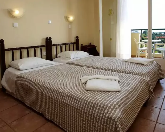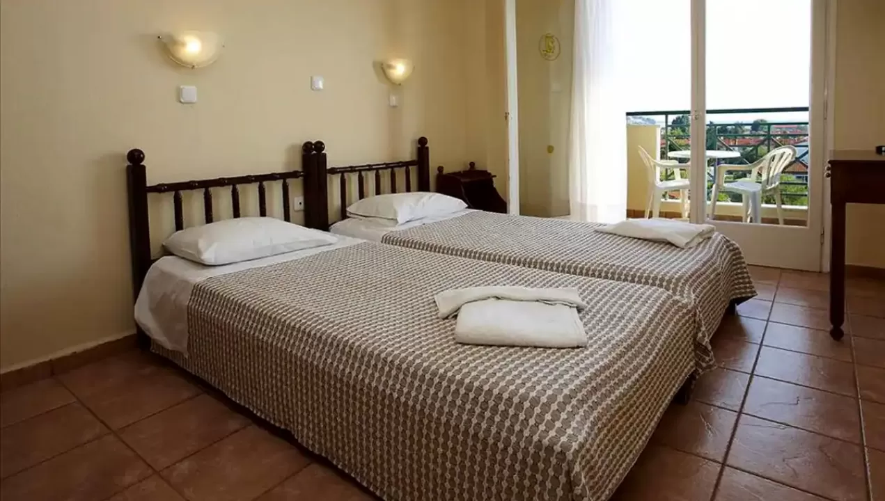 Ukupno 37 soba: Singles & Doubles (~22-25 m²)U sobama: 2 odvojena kreveta, tuš, toalet, frižider, SAT TV, klima-uredjaj, televizor, sef (na upit - uz doplatu na licu mesta), pegla i fen (na upit, na recepciji), balkon/terasa s pogledom na more ili brdo. Hotel je renoviran 2017. godine.