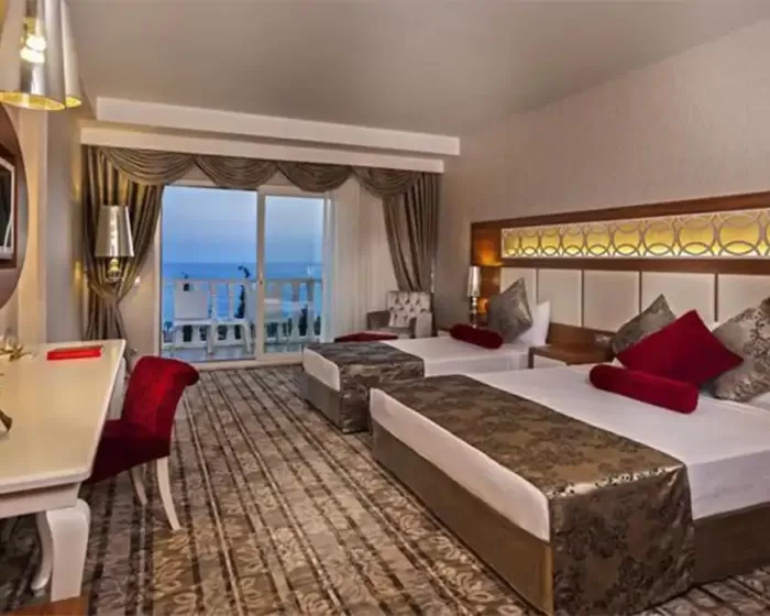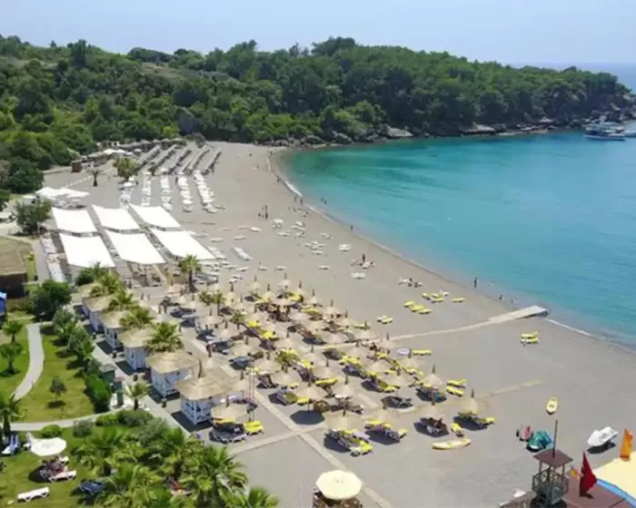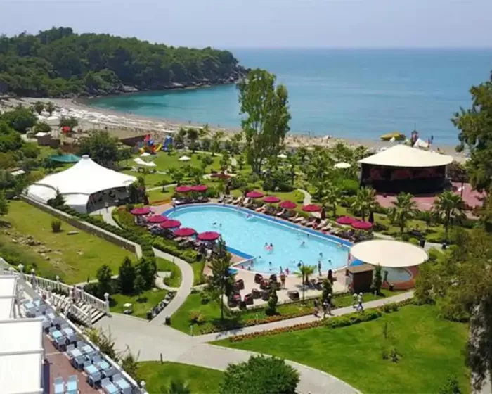 Hotel Justiniano Deluxe Resort Alanja se nalazi na privatnoj peščano-šljunkovitoj plaži, u mestu Okurdžalar, na oko 30 kilometara od letovališta Alanja.