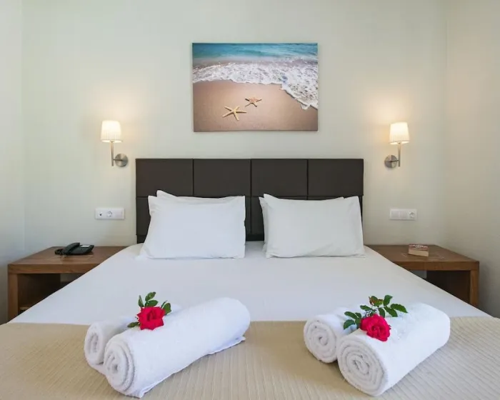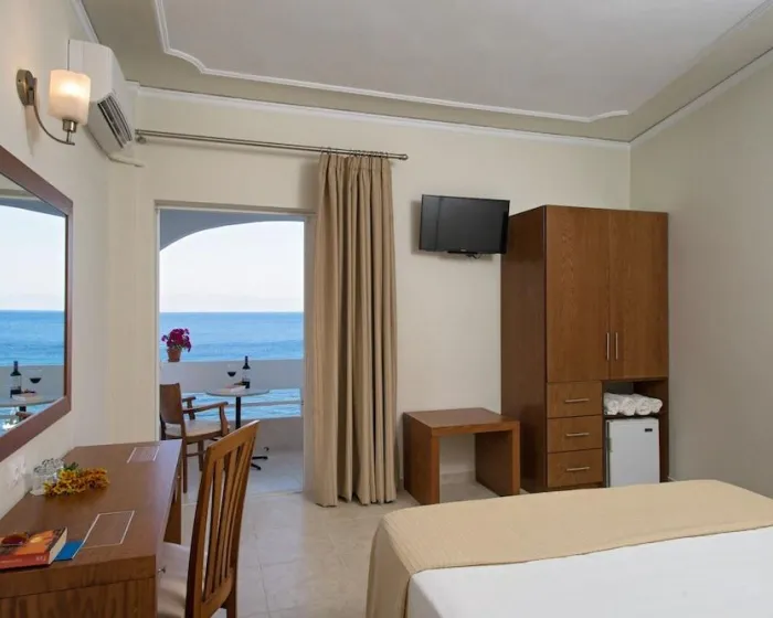 Klima uređaj i centralno grejanje osiguravaju da sobe održavaju udobne temperature. Gosti se mogu opustiti i uživati u pogledu na more sa balkona ili privatne terase nekih soba. Sobe imaju bračni ili krevet veličine queen. Dodatni kreveti mogu biti zatraženi. Sef pruža sigurno čuvanje lične imovine gostiju. Gosti će takođe naći i frižider među standardnim sadržajima. Takođe su obezbeđeni telefon, TV i WiFi (bez dodatne naplate). Kupatila su opremljena tušem i kadom, kao i fenom za kosu. Hotel ima porodične sobe i sobe za nepušače.