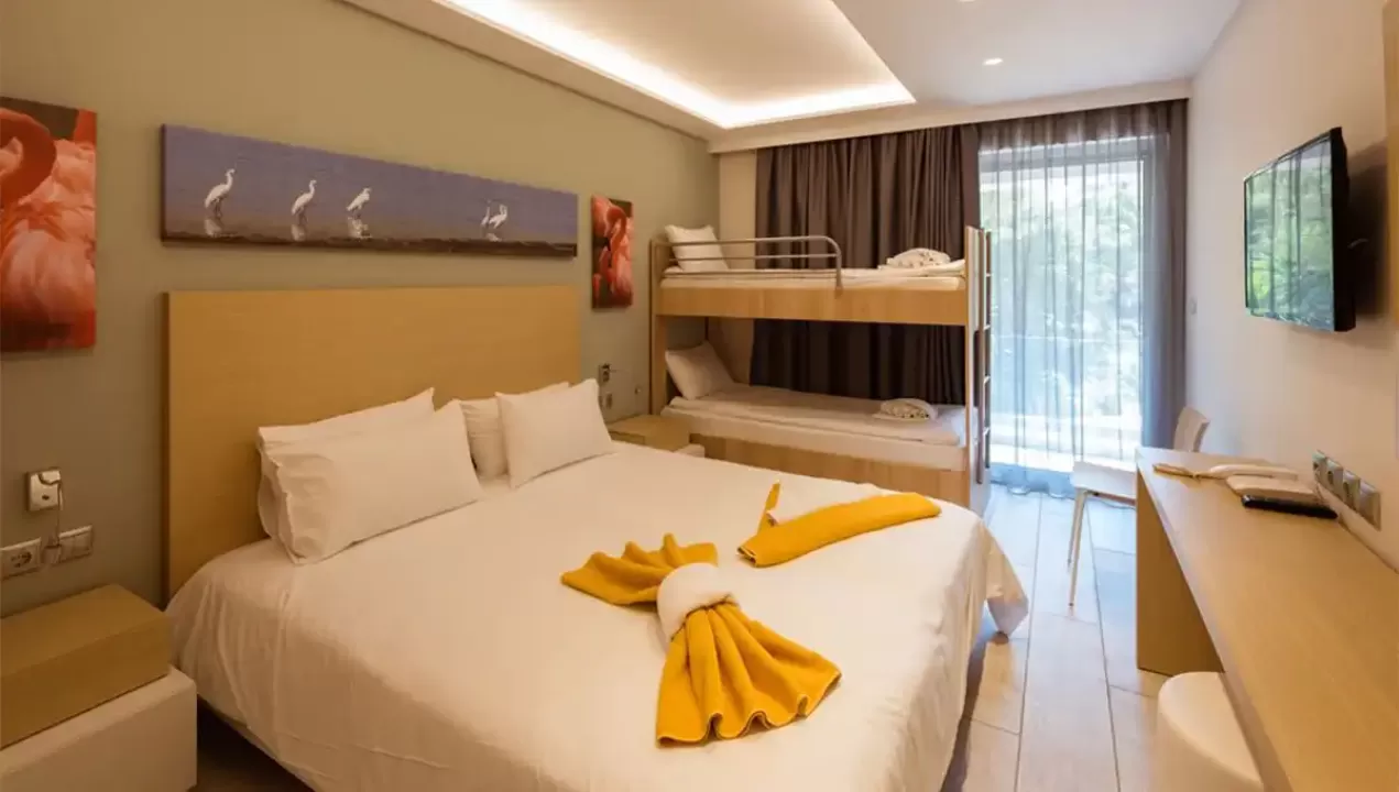U standard i superior sobama: dve odrasle osobe i dva deteta - dva standardna ležaja i kreveti na sprat. Tip pomoćnog ležaja - standardni.